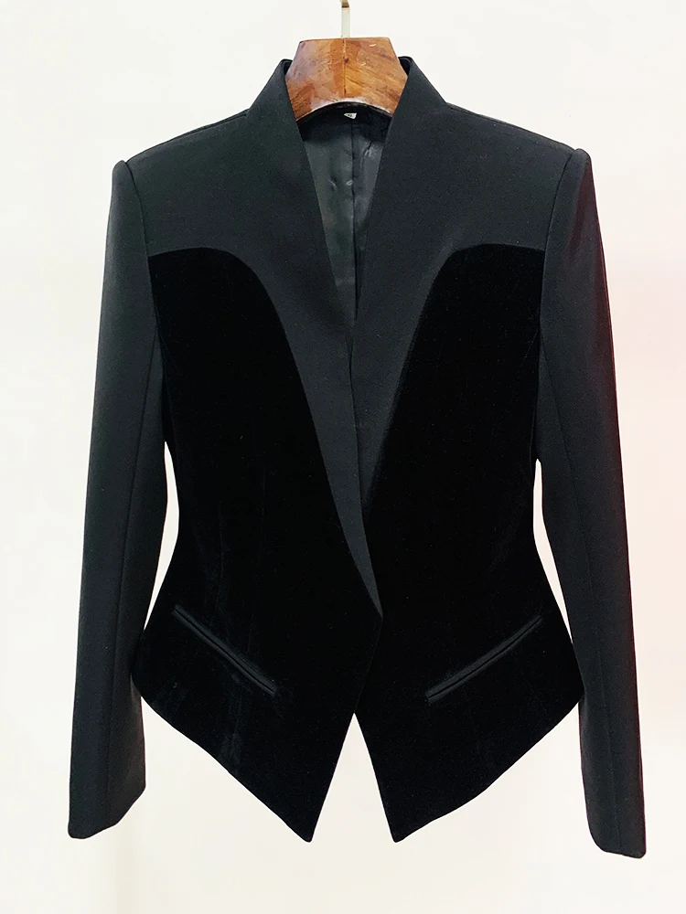 أحدث سترة نسائية من لعام 2024 سترة مخملية مرقعة بقصة ضيقة