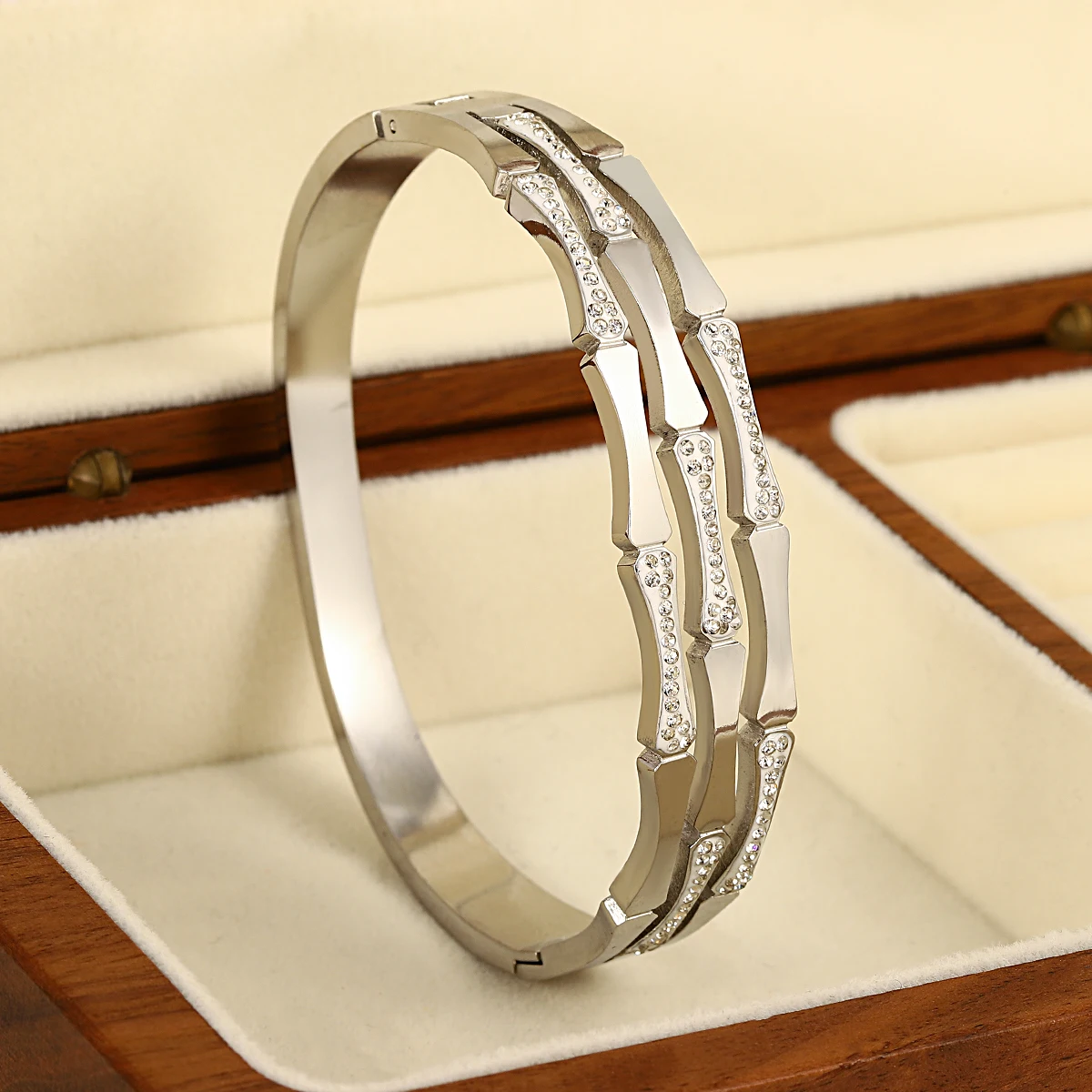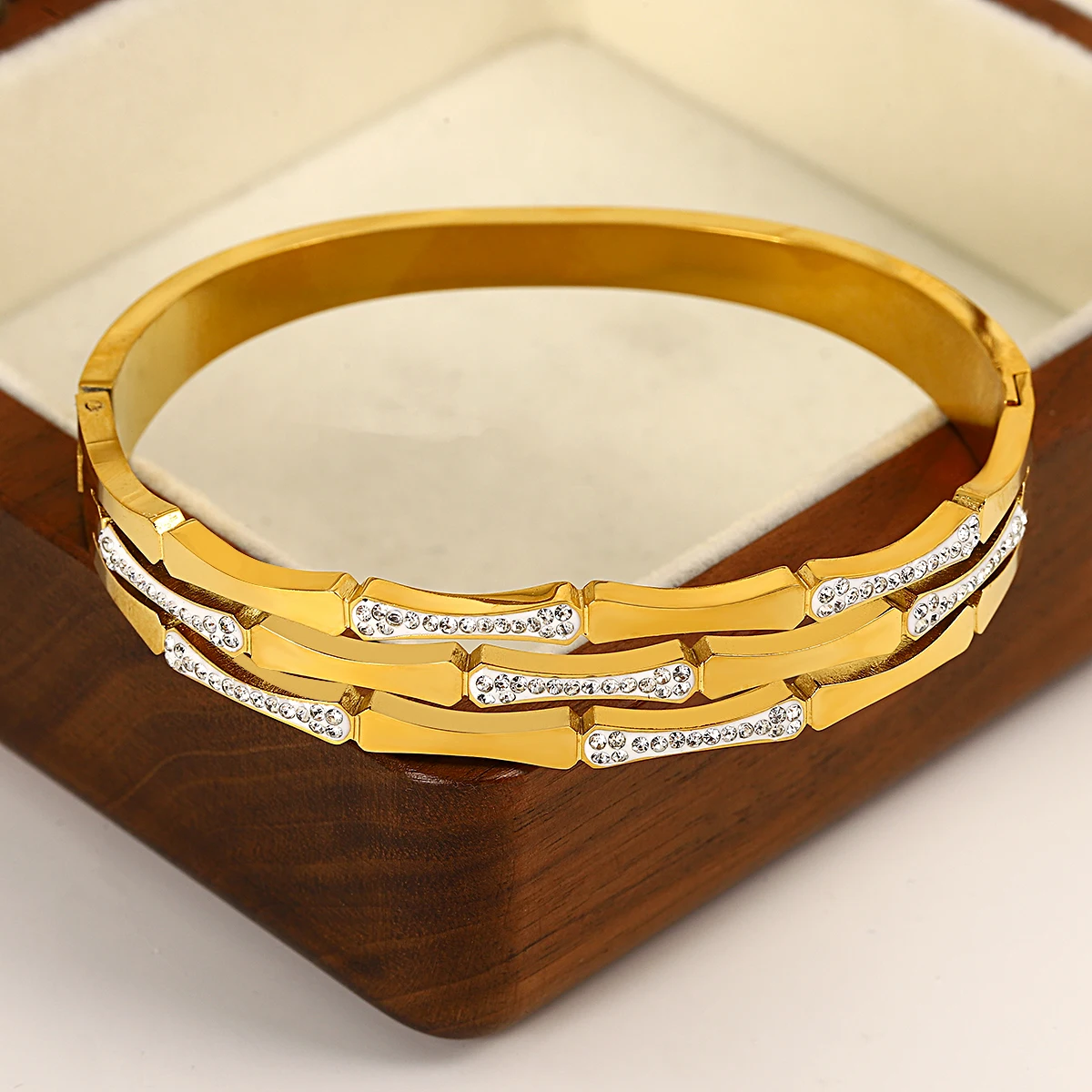أساور خيزران من الفولاذ المقاوم للصدأ للنساء ، أساور مرصعة بحجر الراين ، سحر مطلي بالذهب ، مجوهرات مقاومة للماء