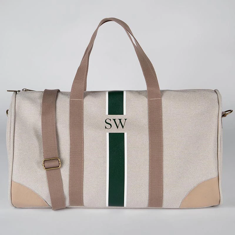 الاتجاهات الخطوط العمودية الطباعة حقيبة يد للسفر للسيدات حروف قابلة للتخصيص من الكتان سعة كبيرة حقيبة سفر للشاطئ بالجملة