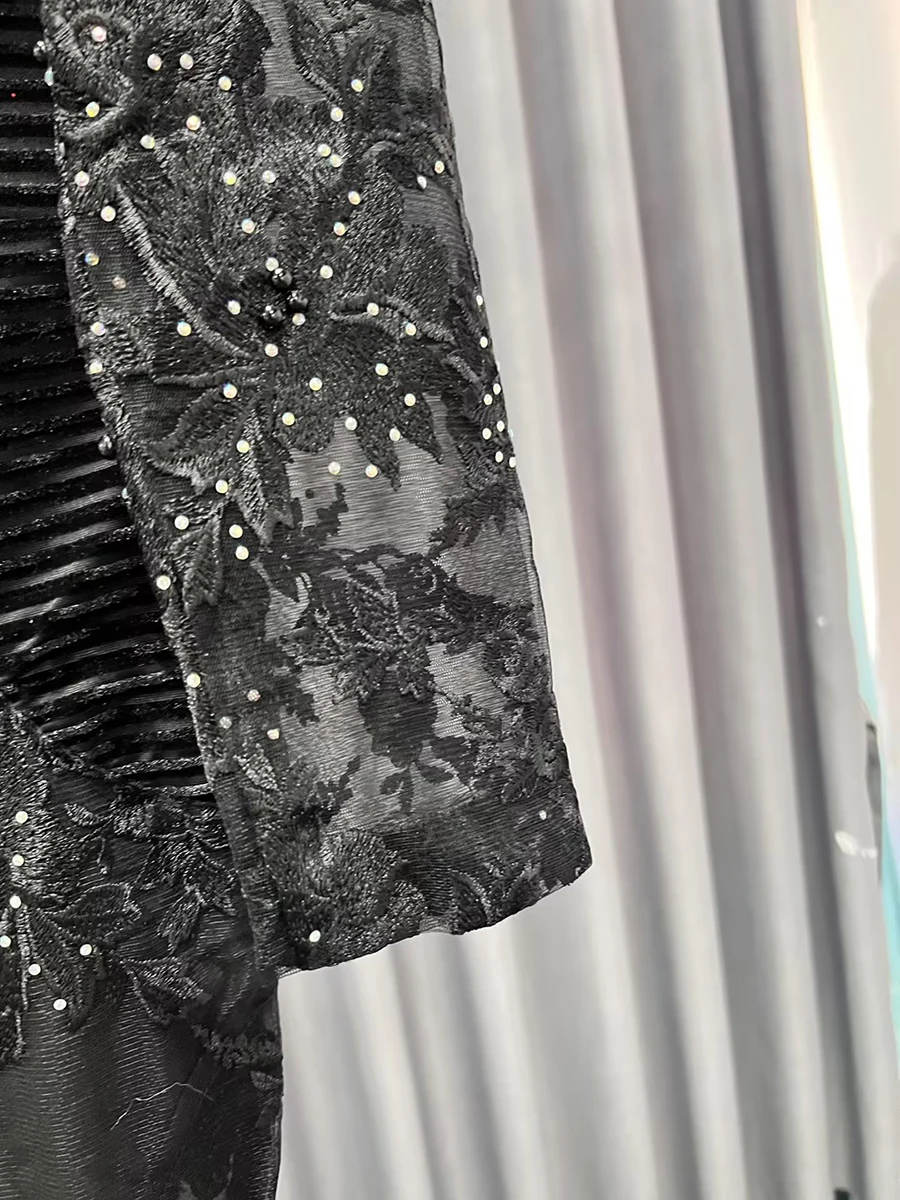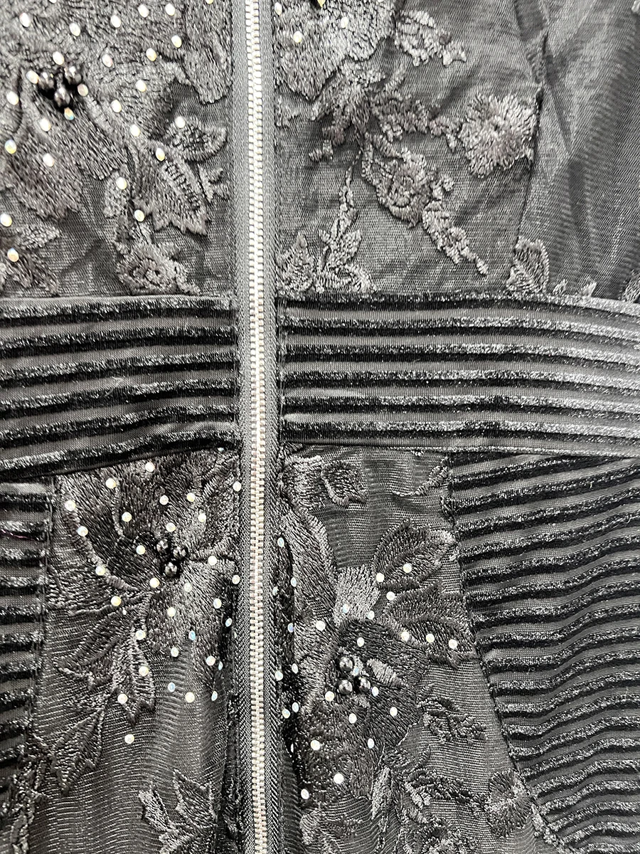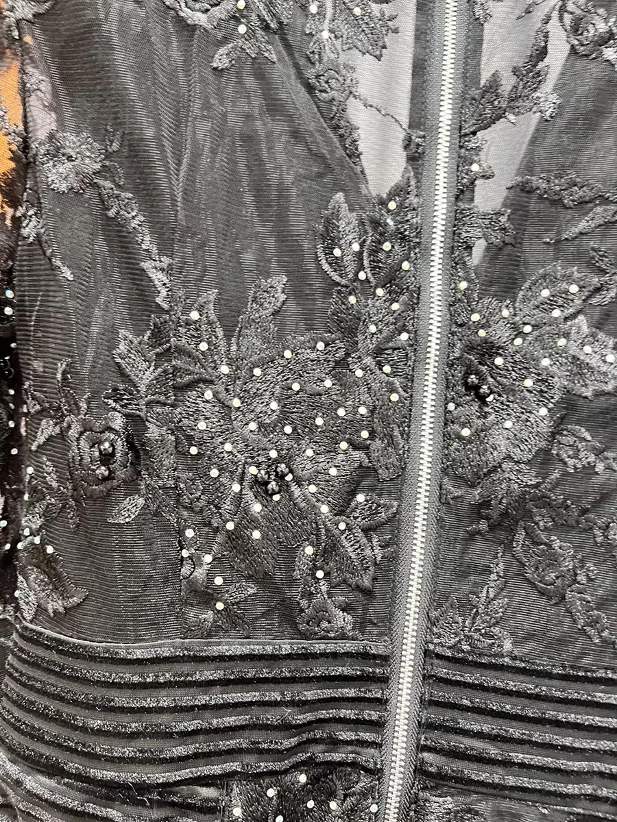 S: الكتف: 41 سم، الصدر: 86 سم، الخصر: 64-88 سم، الورك: 90 سم، الارتفاع: 48 سم، طول الكم: 56 سم، الطول: 155 سم