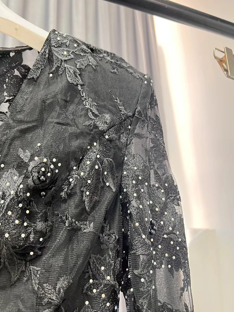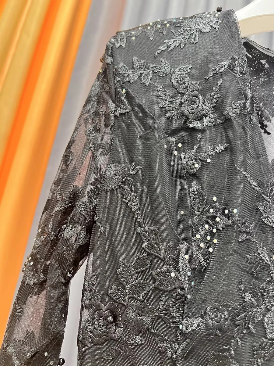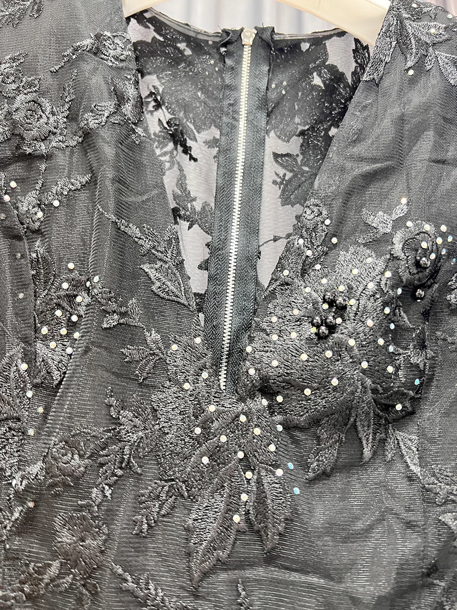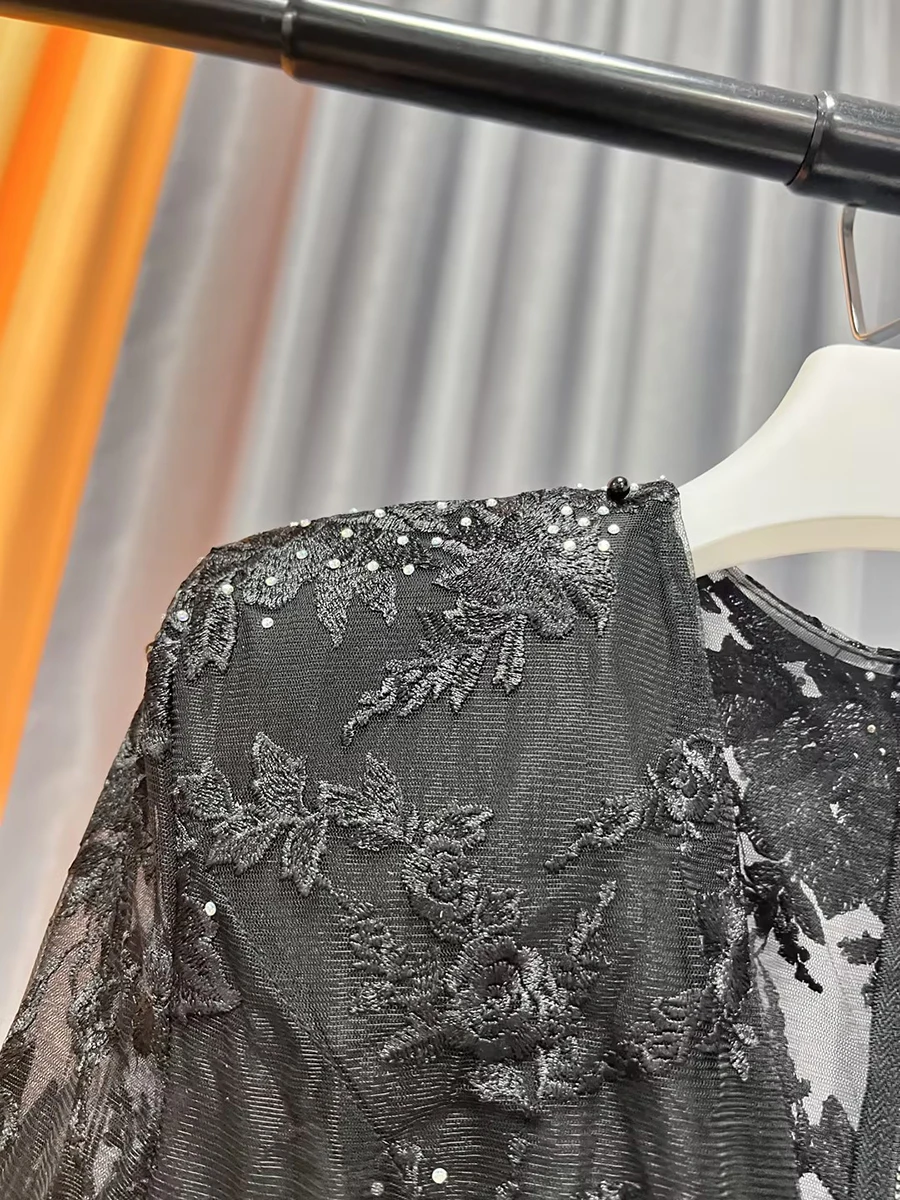 S: الكتف: 41 سم، الصدر: 86 سم، الخصر: 64-88 سم، الورك: 90 سم، الارتفاع: 48 سم، طول الكم: 56 سم، الطول: 155 سم