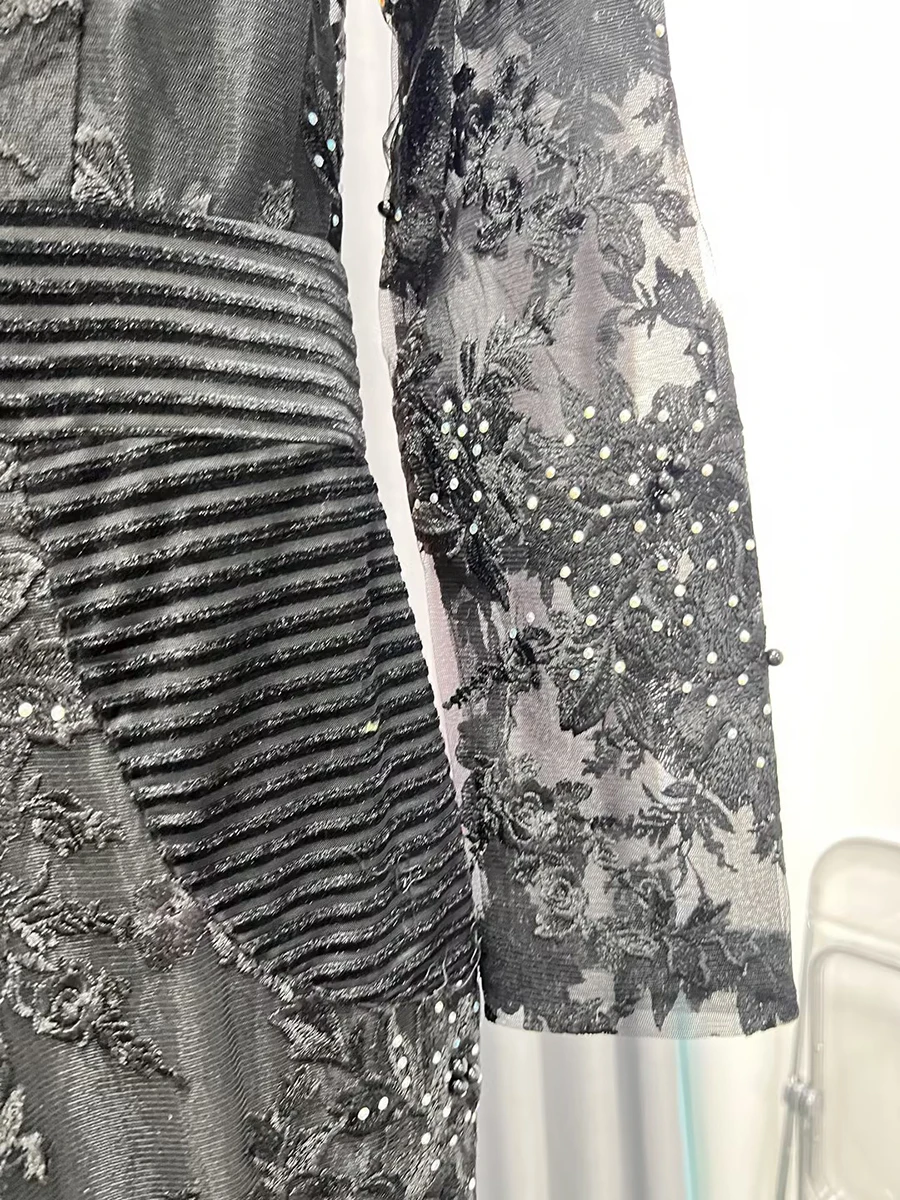 L: الكتف: 43 سم، الصدر: 94 سم، الخصر: 70-76 سم، الورك: 98 سم، الارتفاع: 52 سم، طول الكم: 58 سم، الطول: 157 سم
