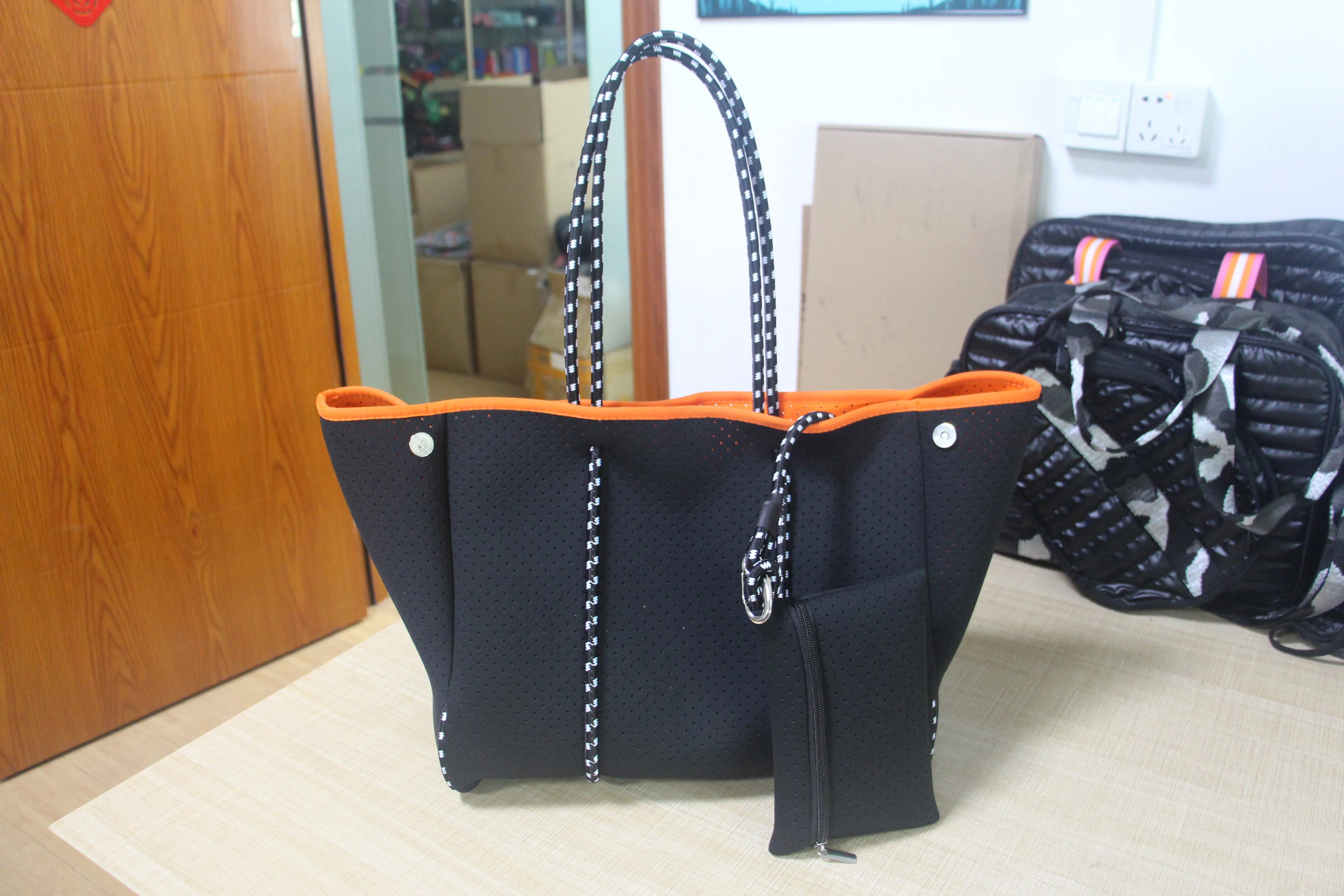 جديد وصول حار بيع النيوبرين حمل حقيبة بالجملة النساء حقائب تسوق كبيرة مثقب النيوبرين حقيبة الشاطئ للنساء