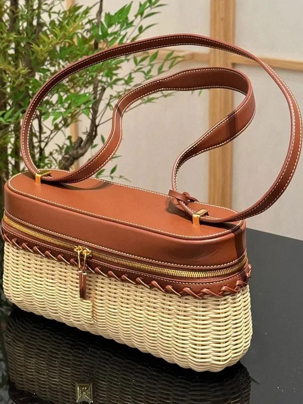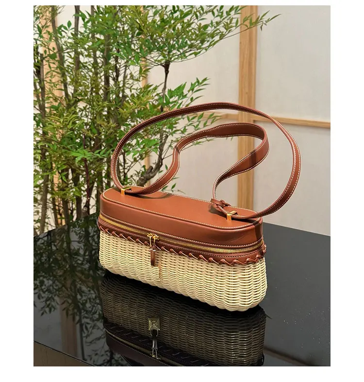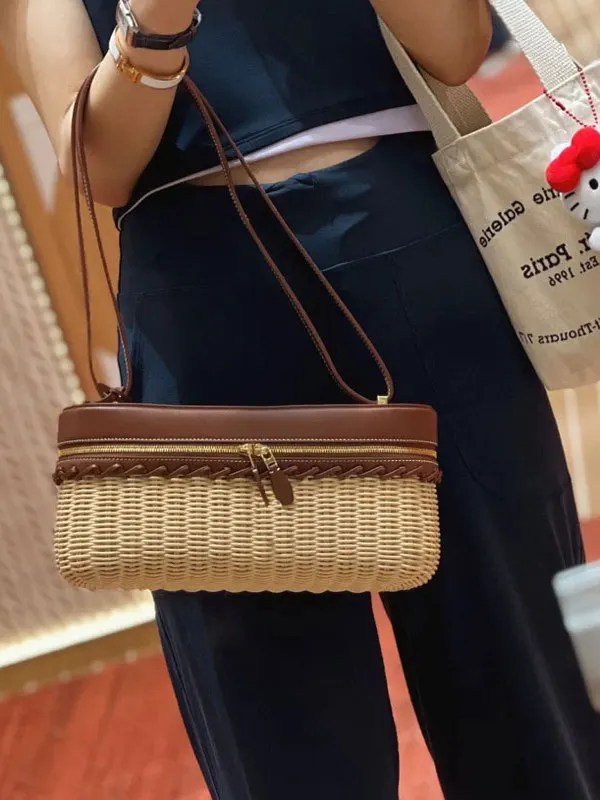 حقيبة يد صغيرة من الخيزران المنسوج من الخيزران كيلي للنزهة حقيبة مكياج بكتف واحد حقيبة كروس على الطراز الكوري للشباب غير رسمية