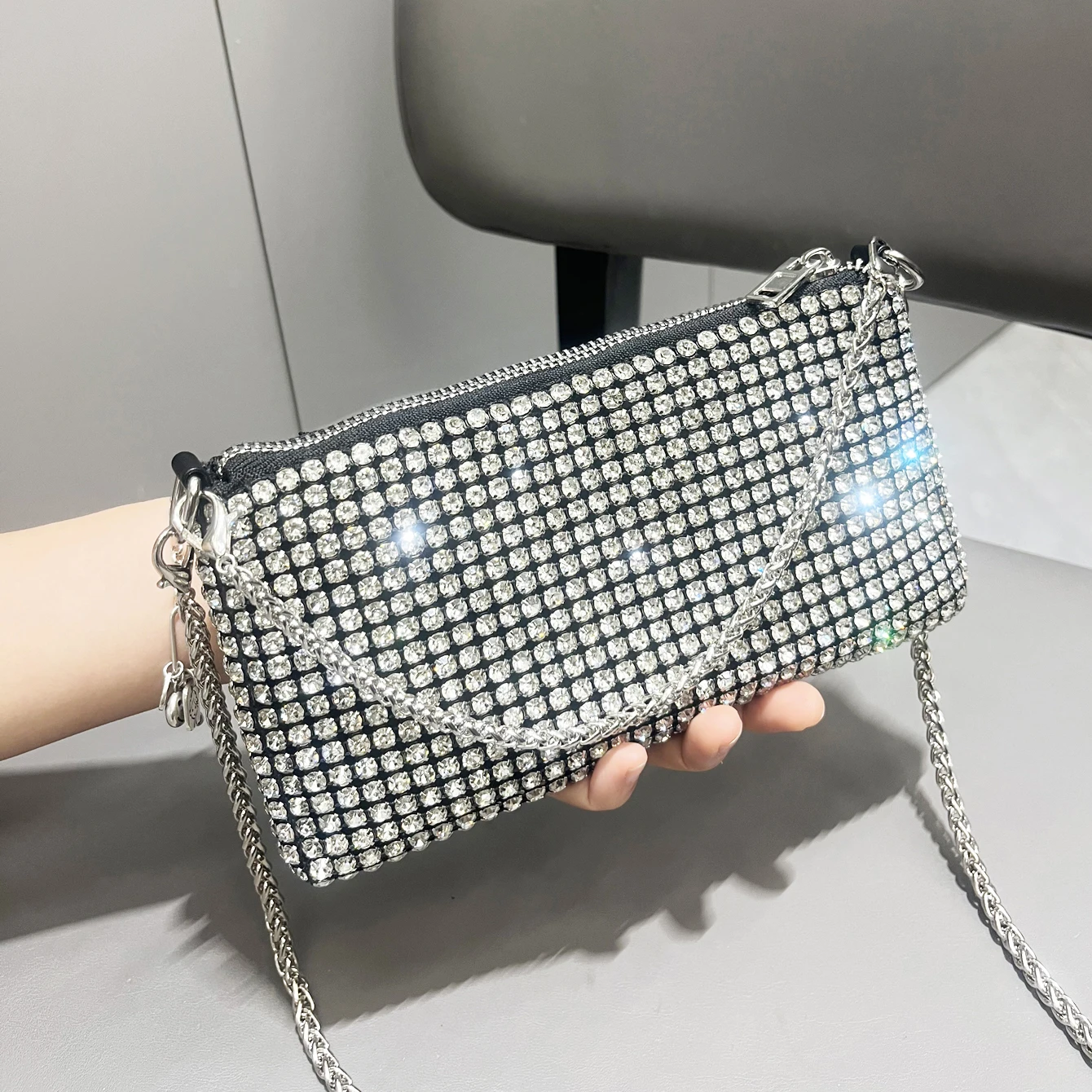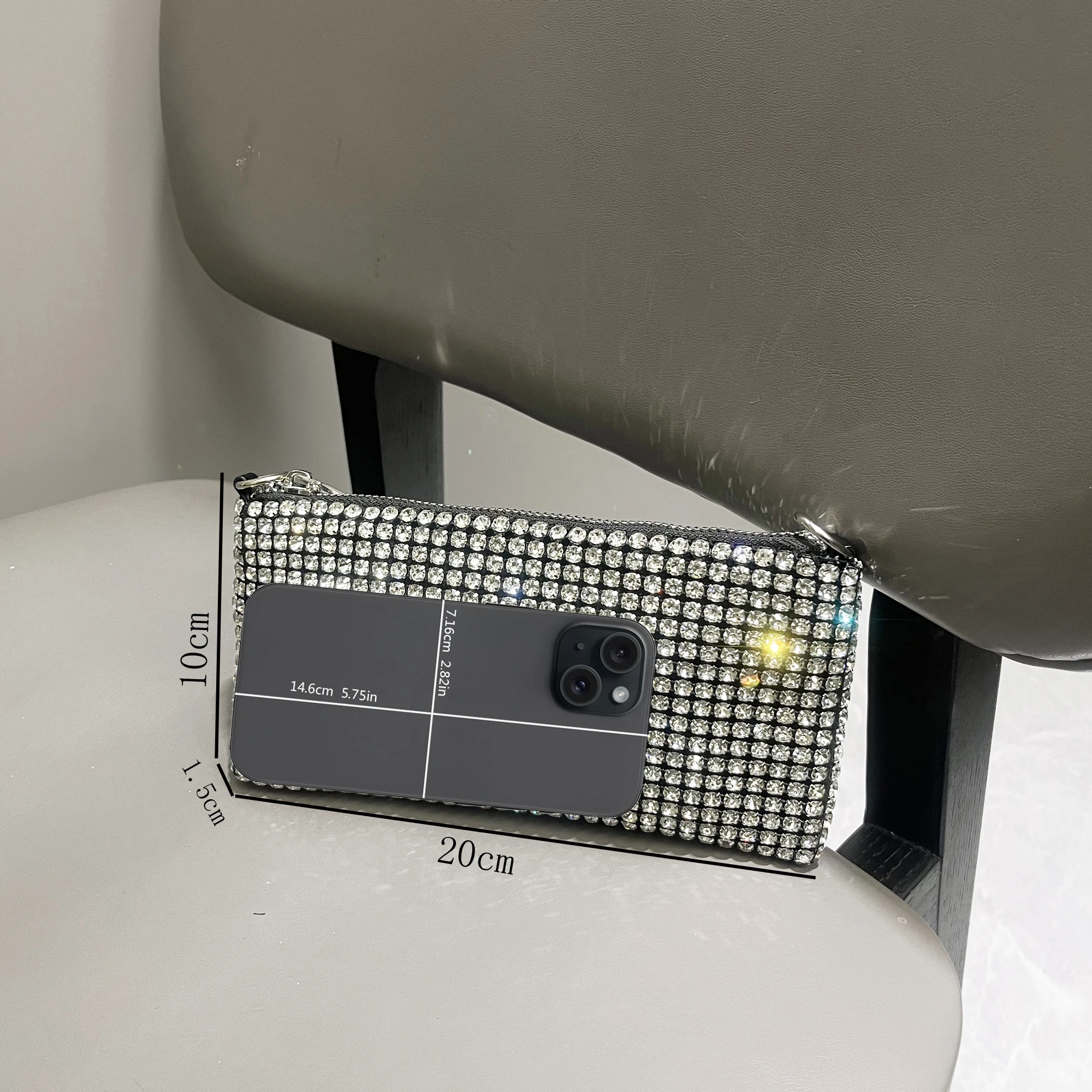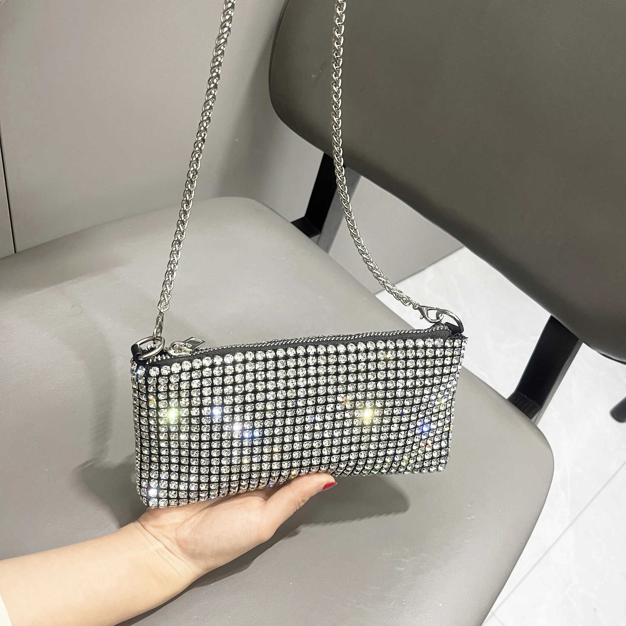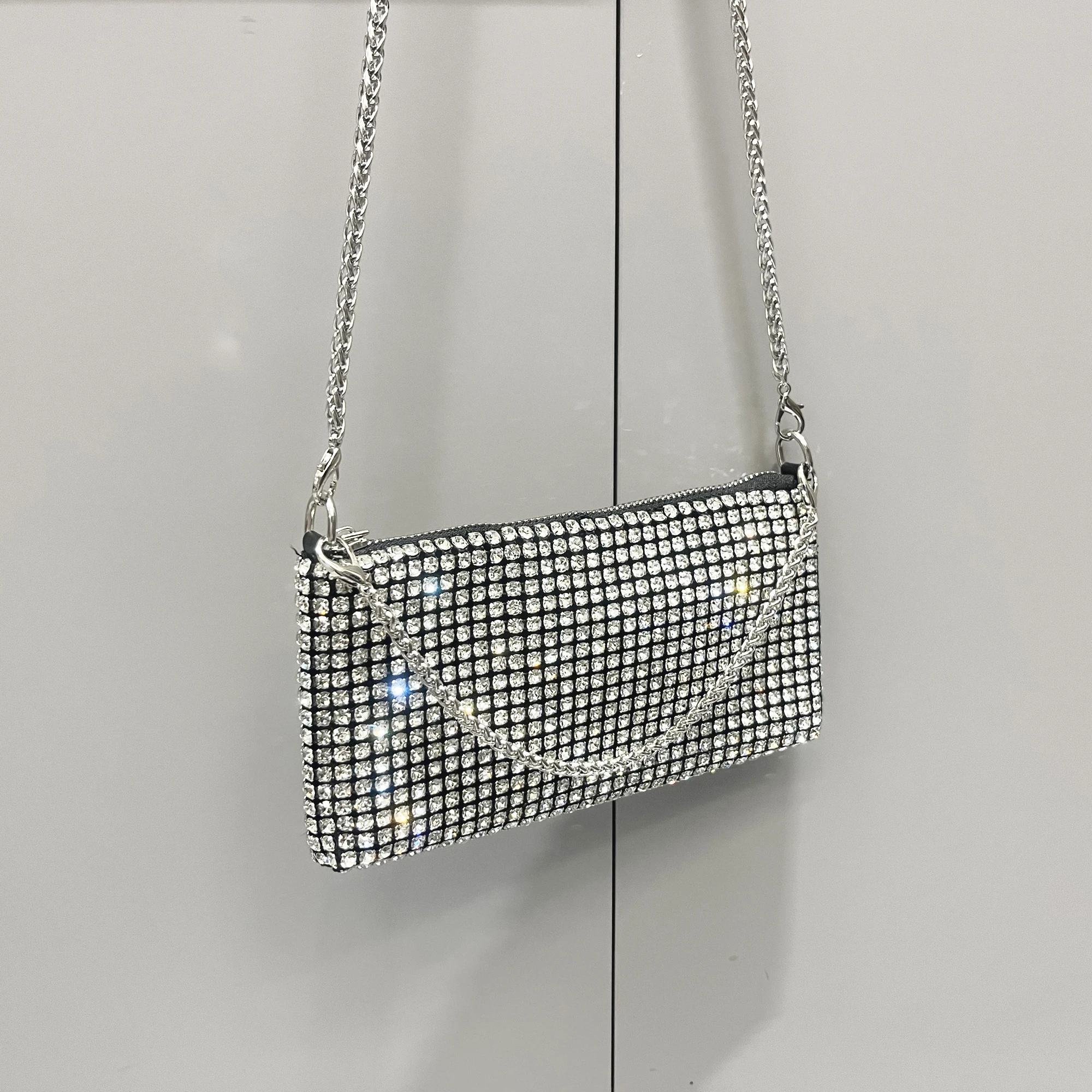 حقيبة يد فاخرة من أحجار الراين للنساء بمقبض حقيبة كتف ومحفظة