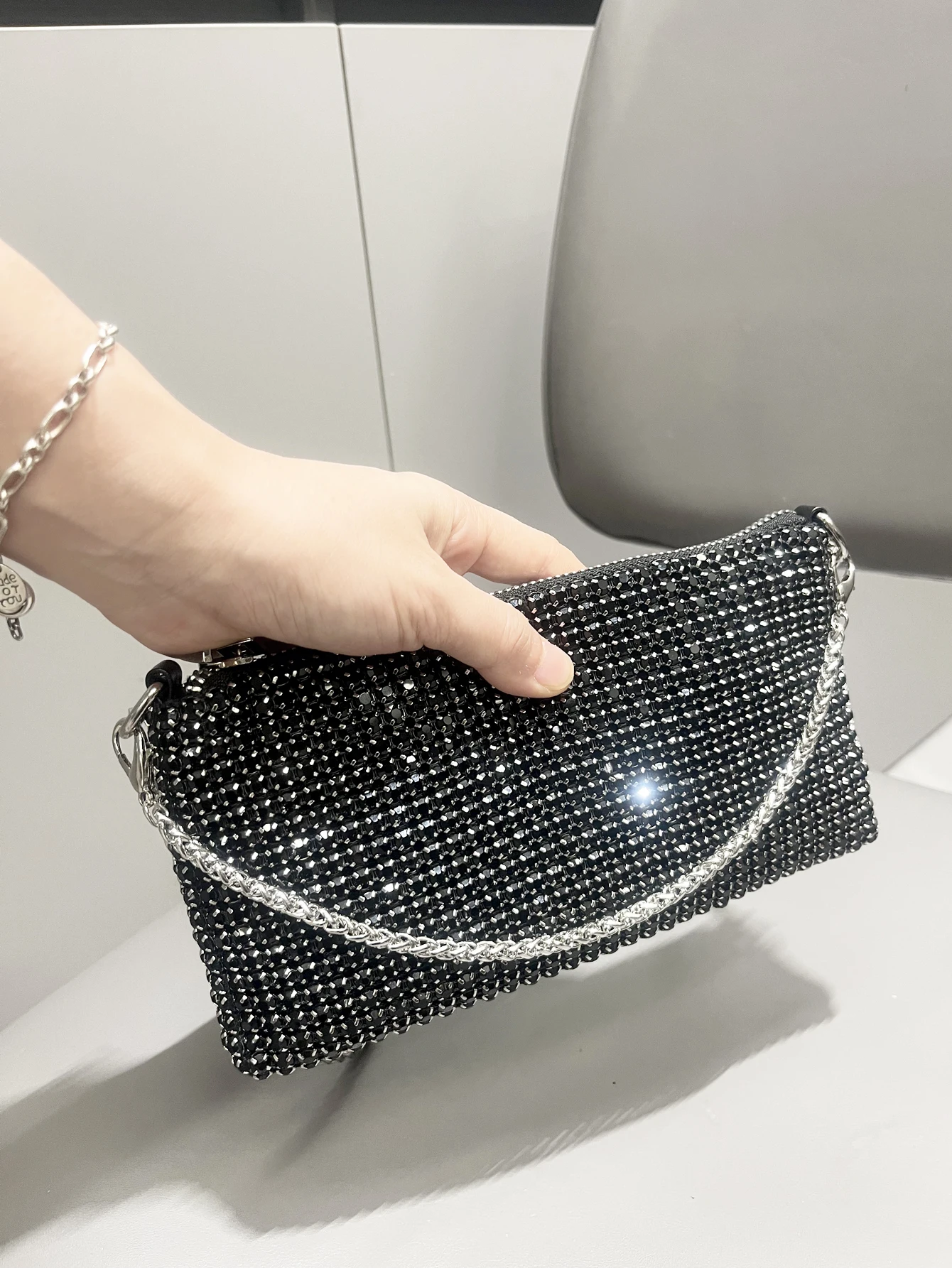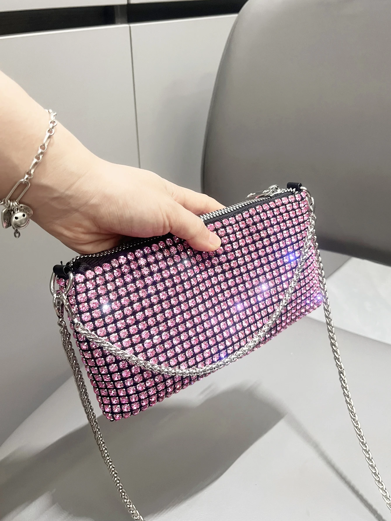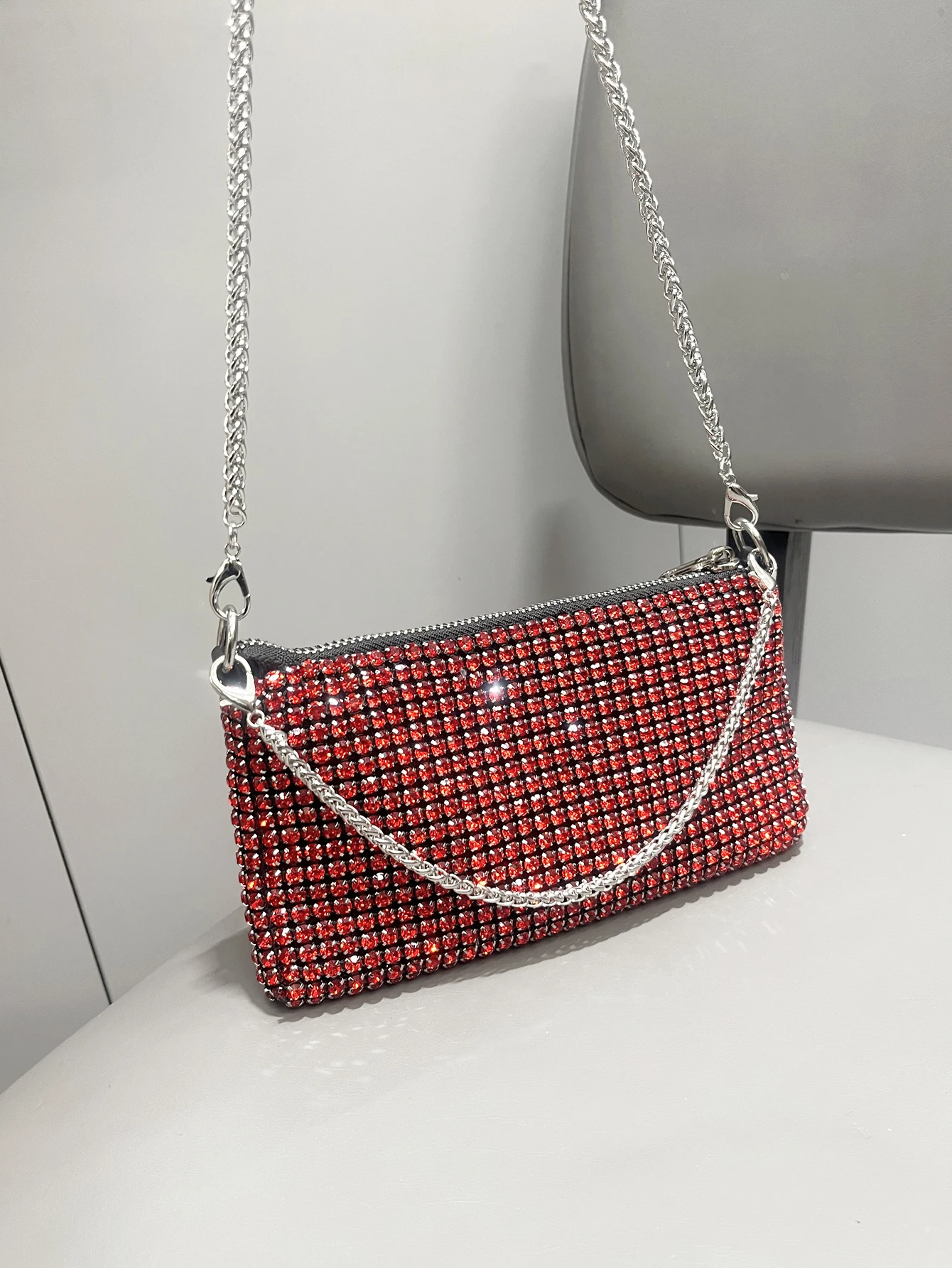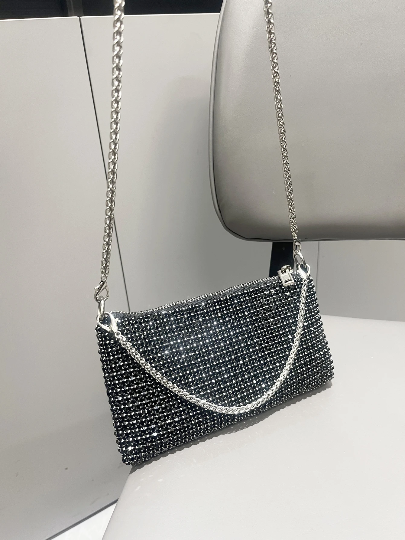 حقيبة يد فاخرة من أحجار الراين للنساء بمقبض حقيبة كتف ومحفظة