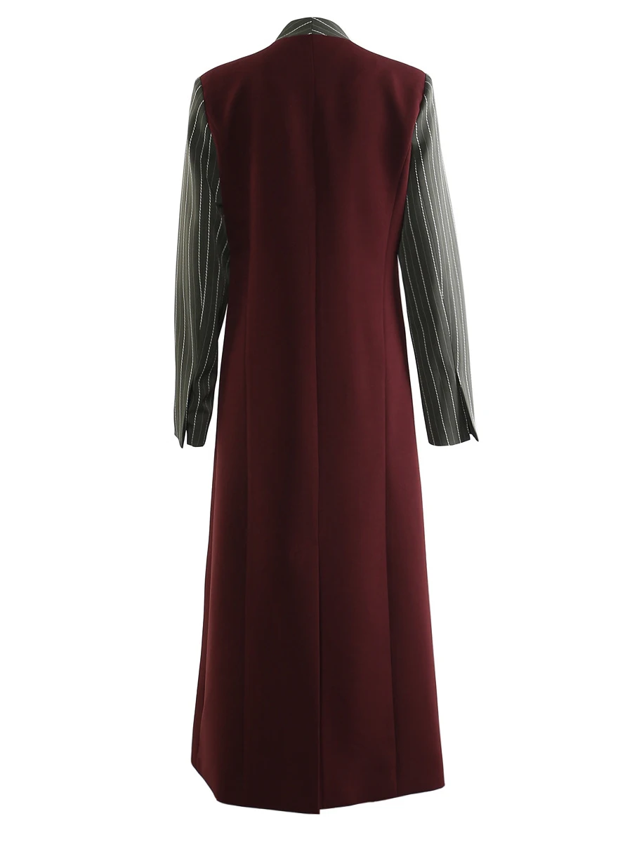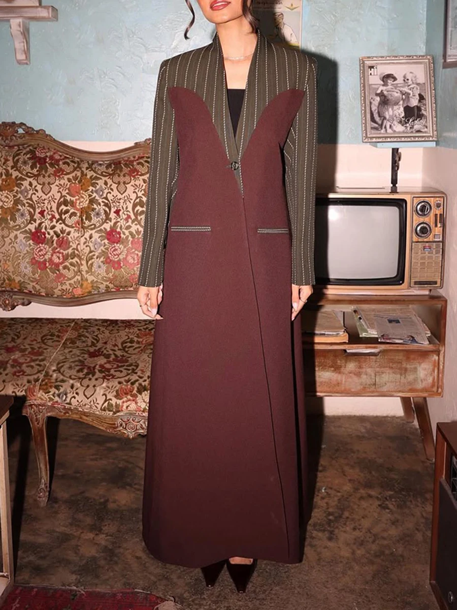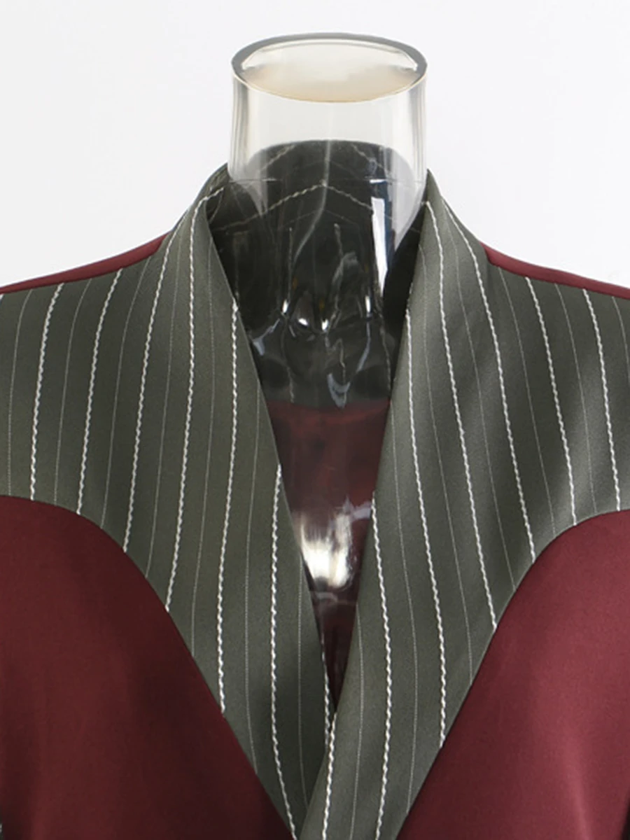 سترة مخطط موضة للنساء الرقبة طويلة الأكمام المرقعة الملابس النسائية جديد