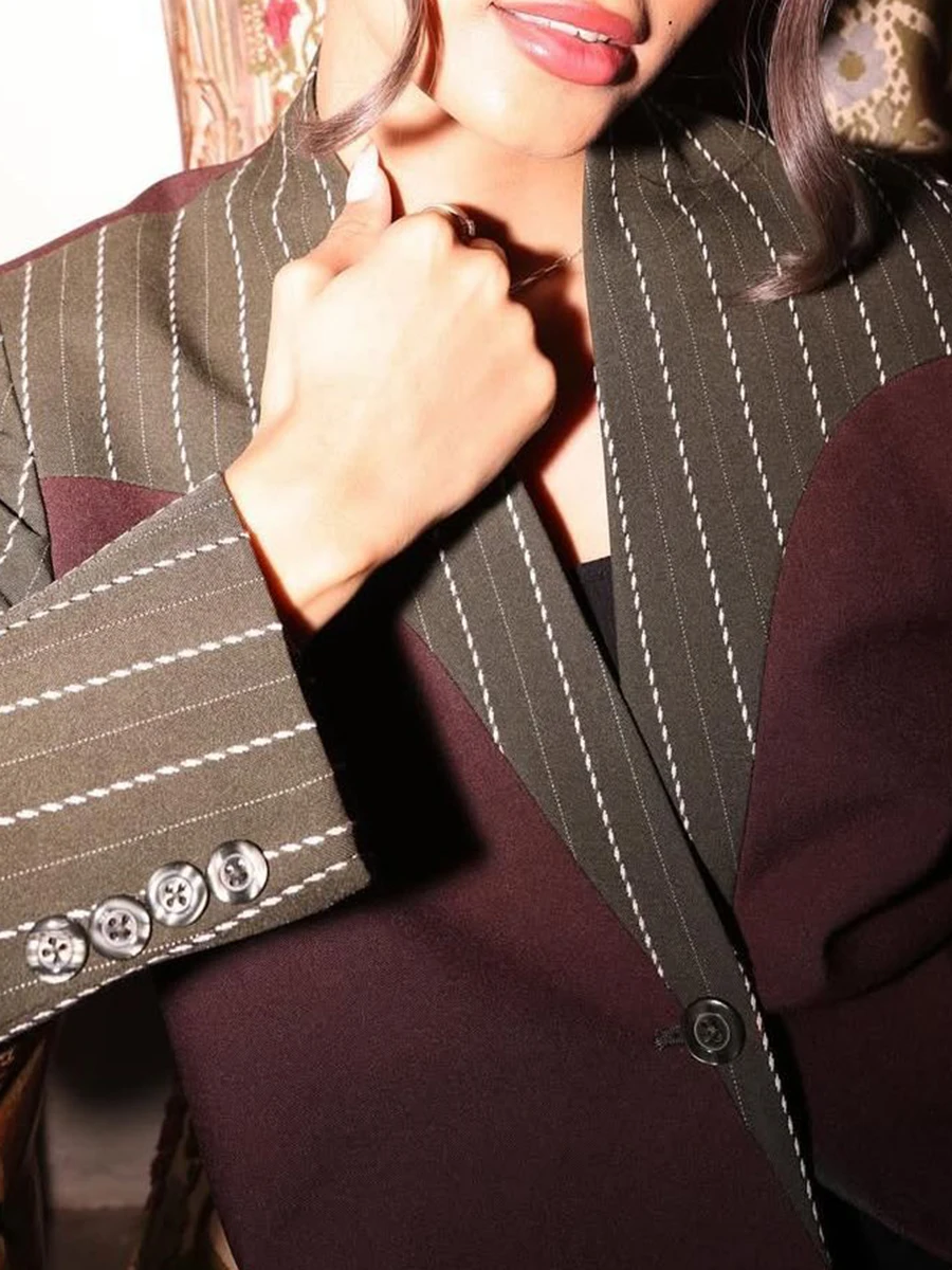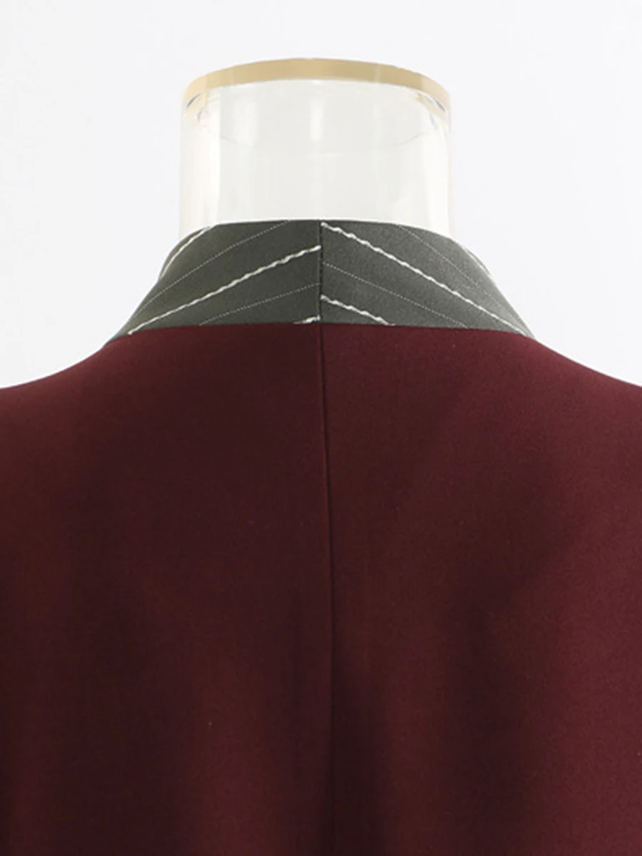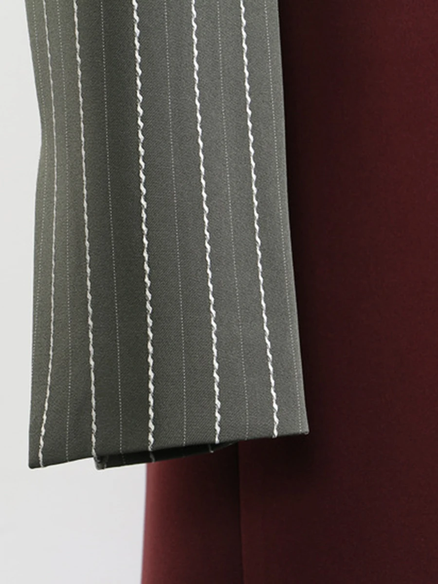 سترة مخطط موضة للنساء الرقبة طويلة الأكمام المرقعة الملابس النسائية جديد