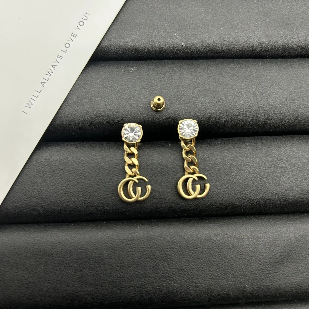 سلسلة جديدة بأحرف مزدوجة كلاسيكية، وأقراط مرصعة بشرابة من حجر الراين، وأقراط إكسسوارات فرنسية أنيقة