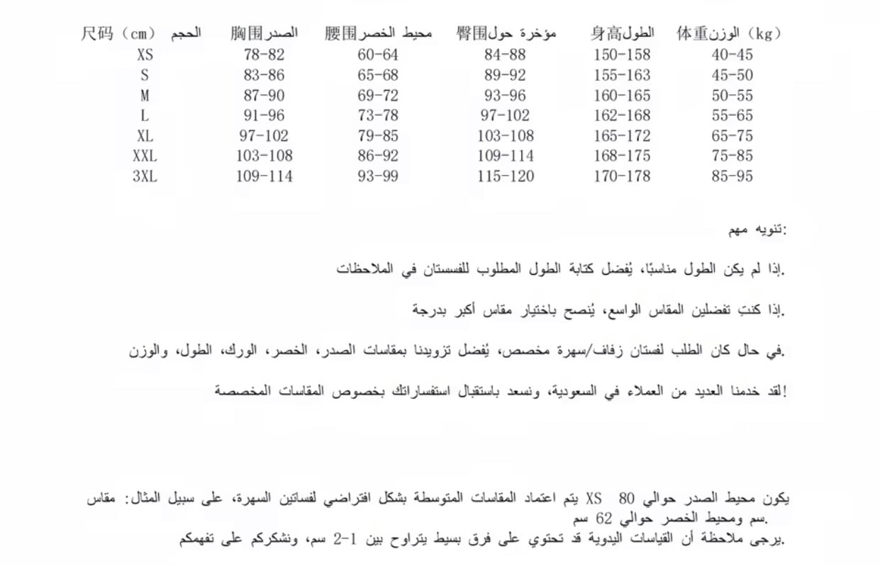 4.من فضلك لا تختار مقاسك المعتاد.بدلاً من ذلك، اختر مقاسك بناءً على جدول المقاسات الخاص بنا.يرجى ملاحظة أن القياسات اليدوية قد تسمح بخطأ 2-3 سم!!!