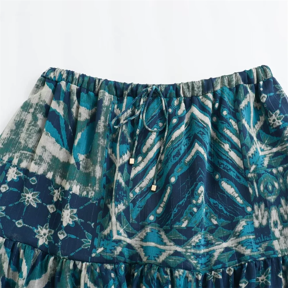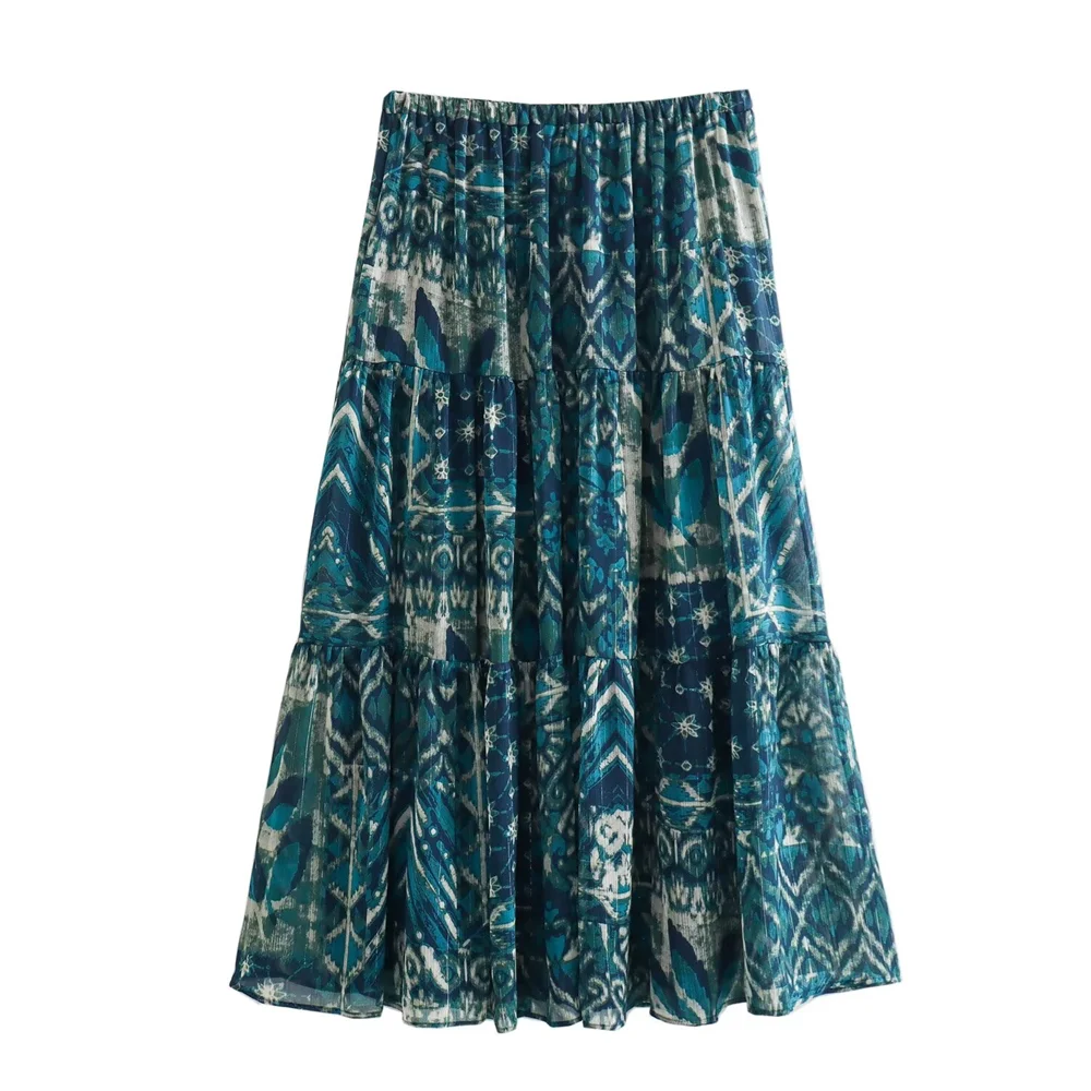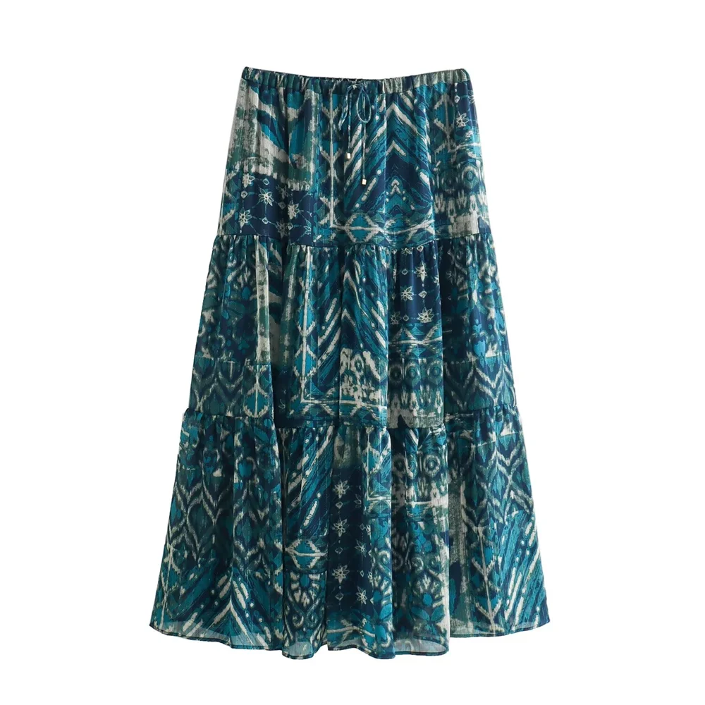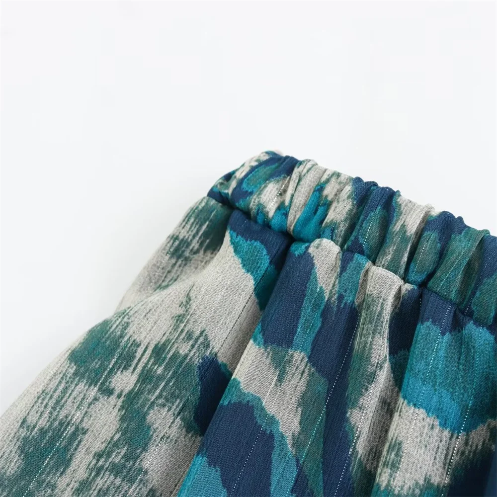 طقم مطبوع بخيوط معدنية ربيعية/تنورة مطبوعة برباط عالي الخصر للنساء