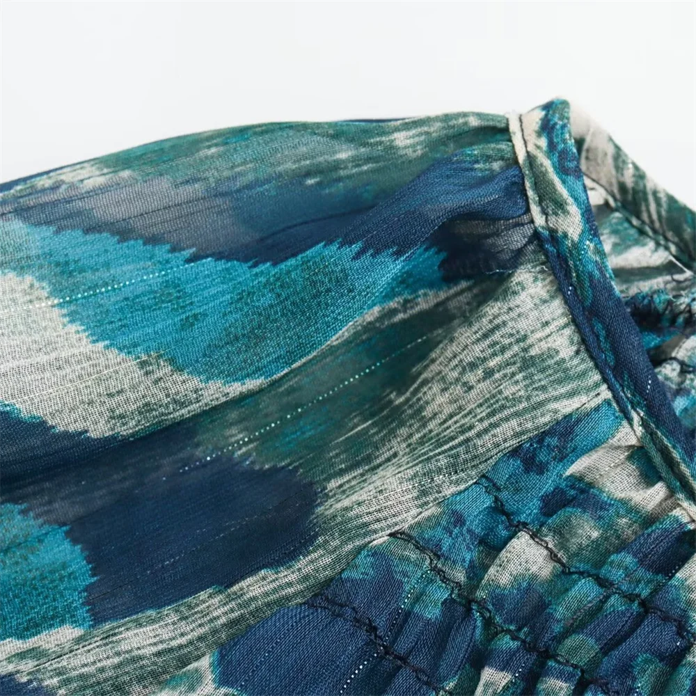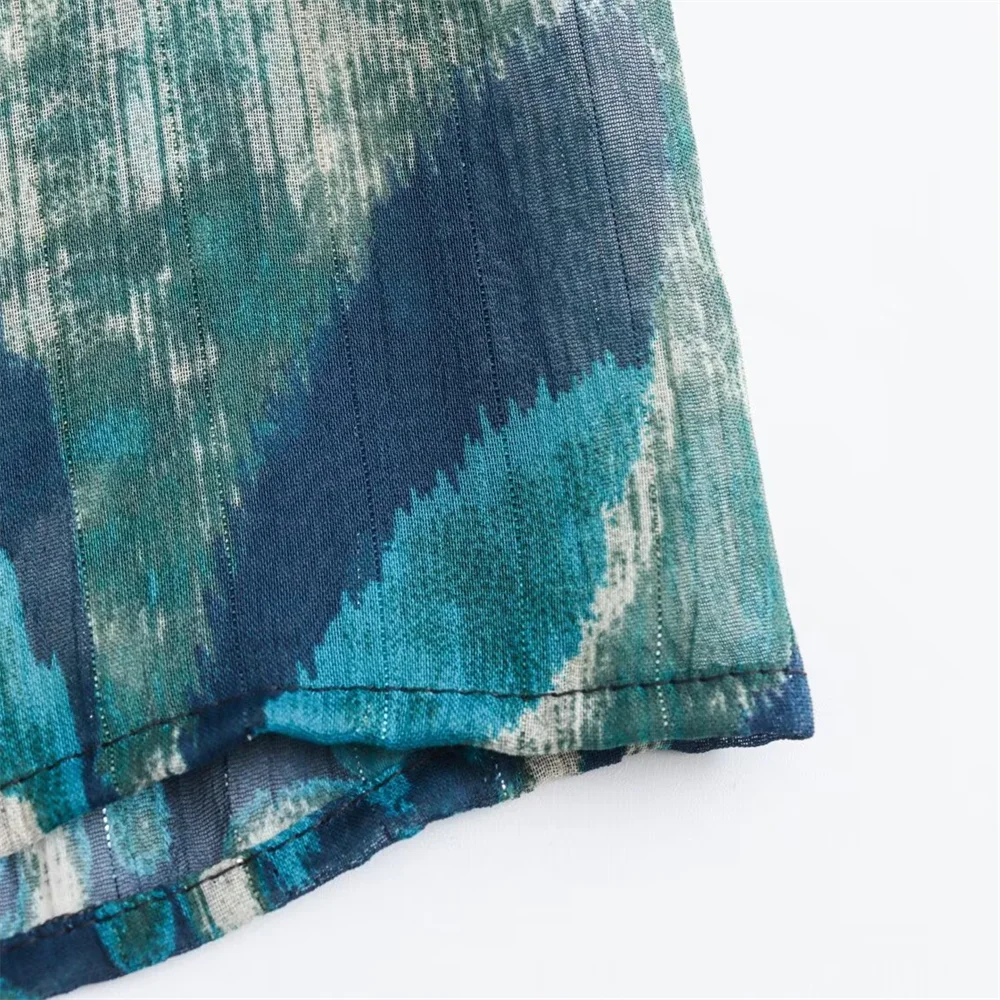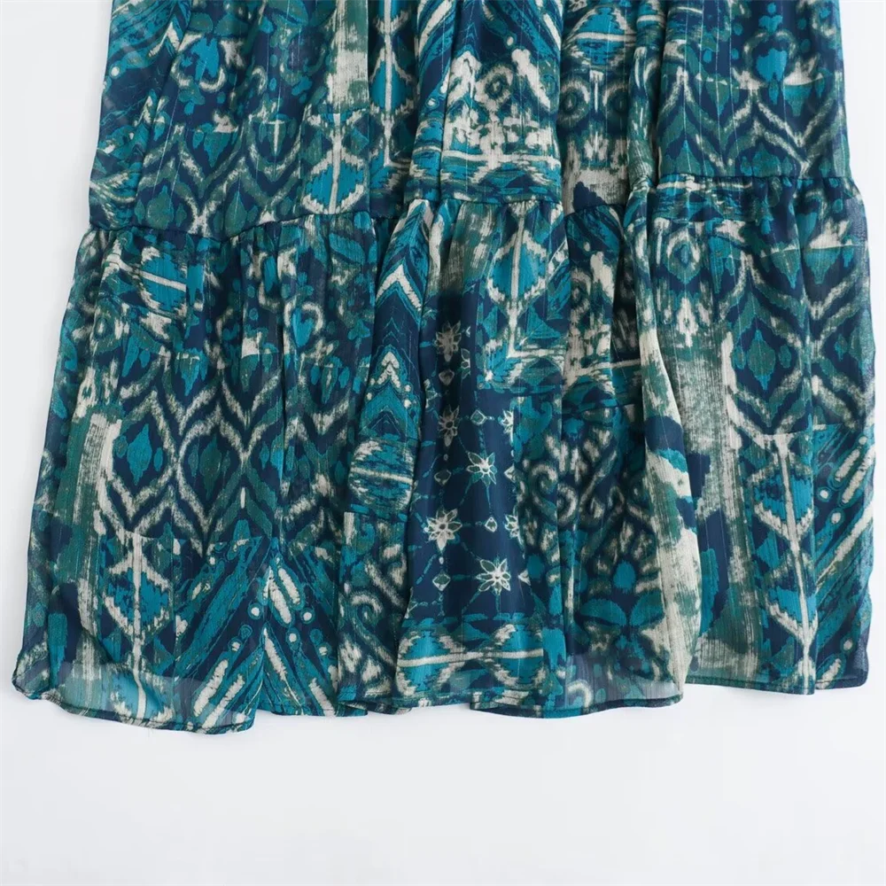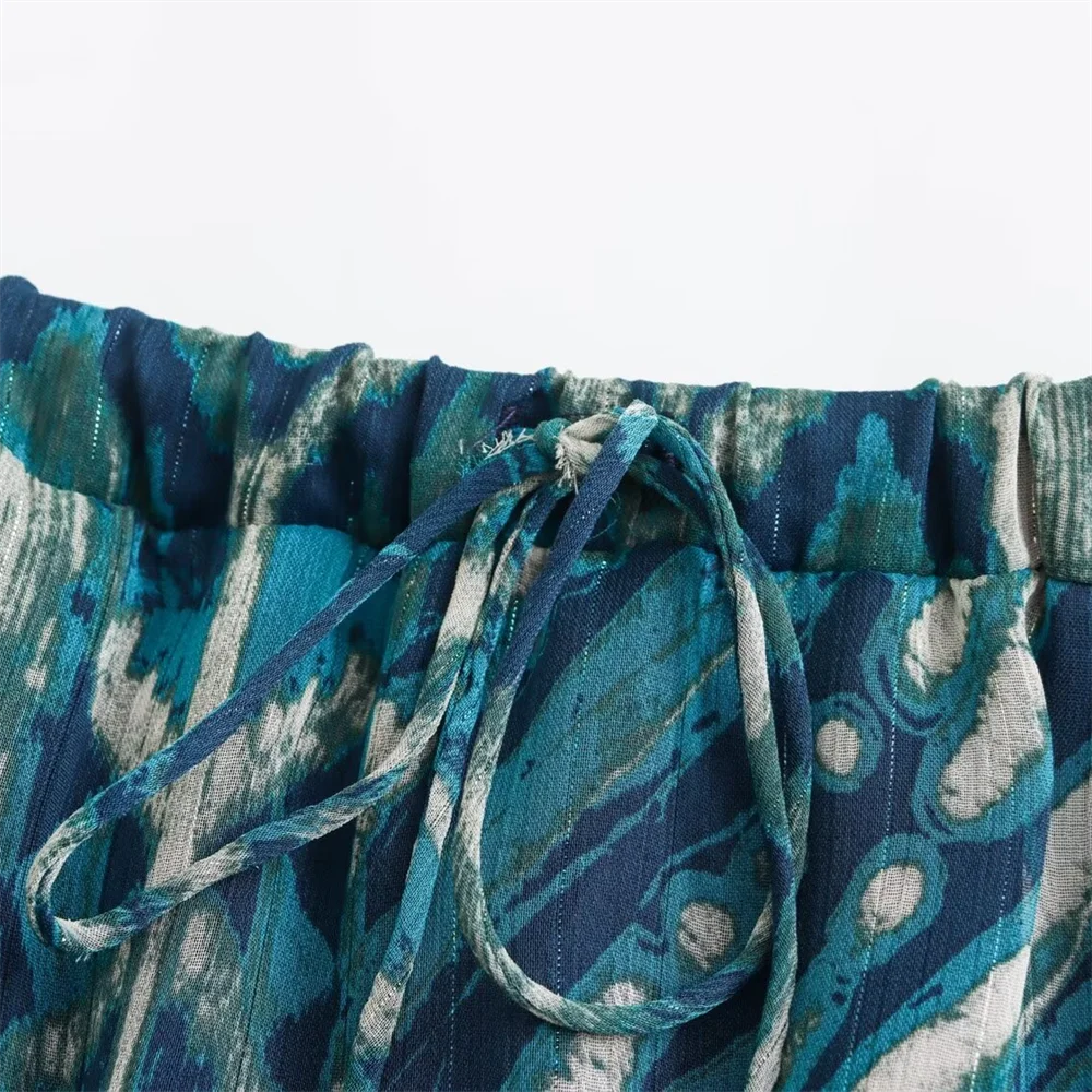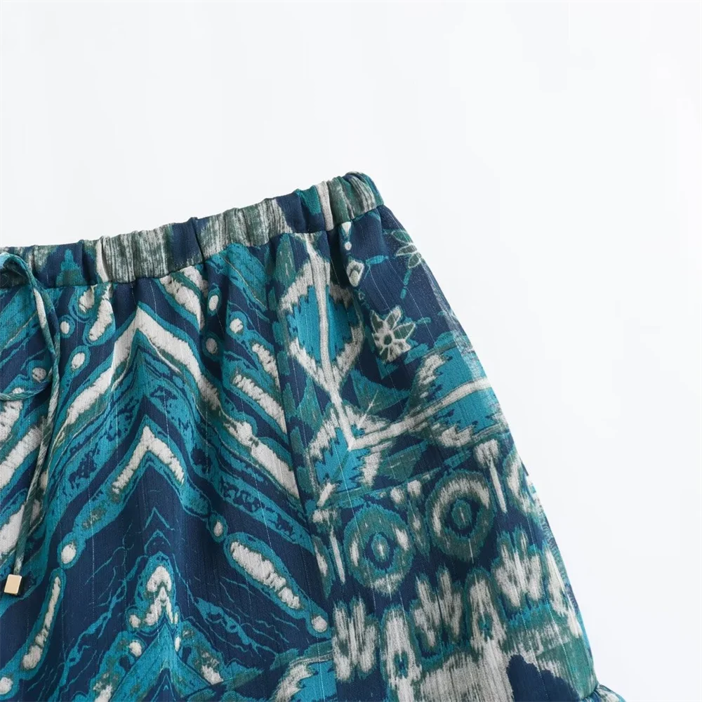 طقم مطبوع بخيوط معدنية ربيعية/تنورة مطبوعة برباط عالي الخصر للنساء
