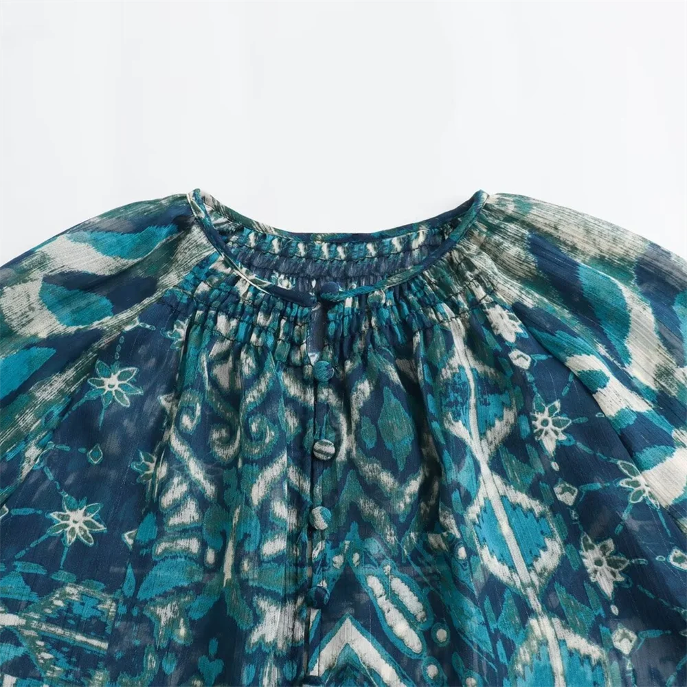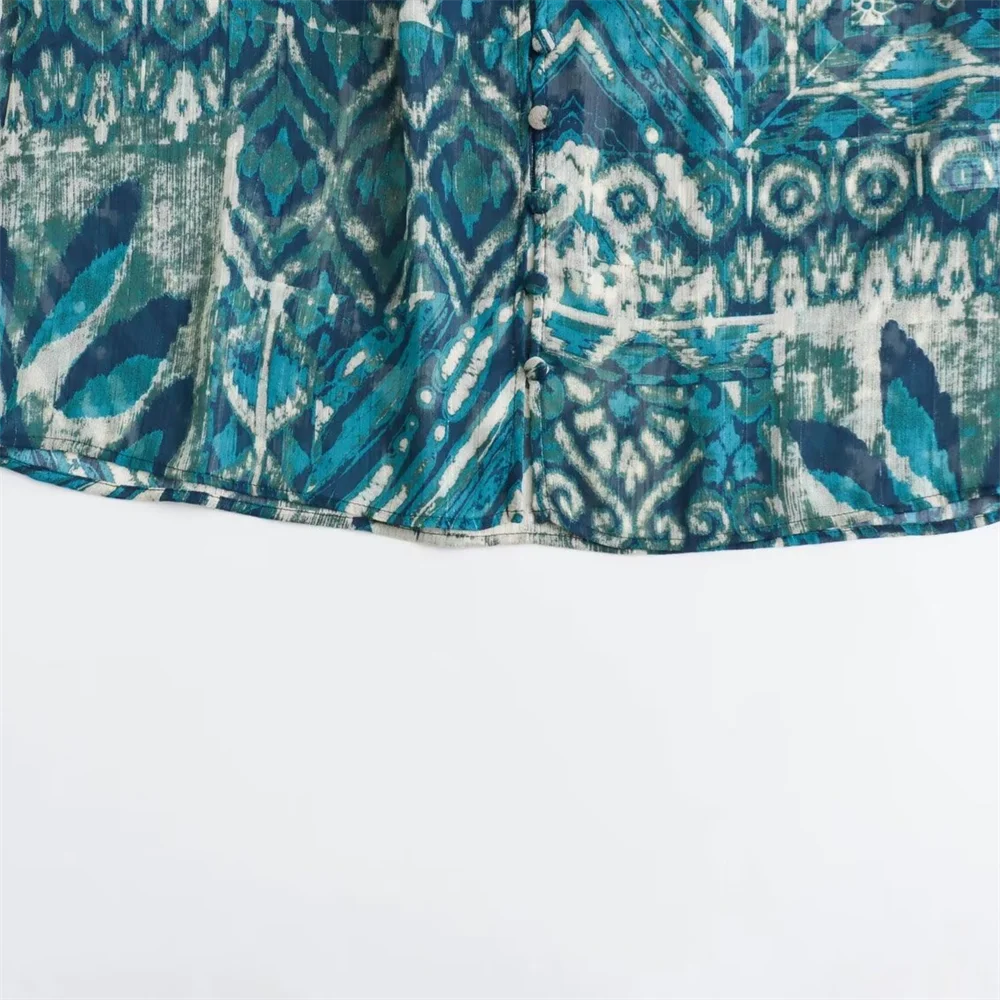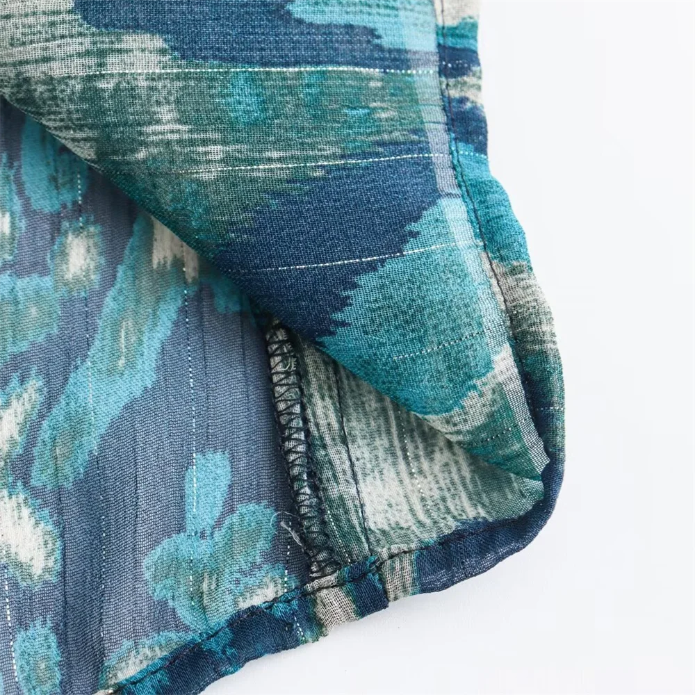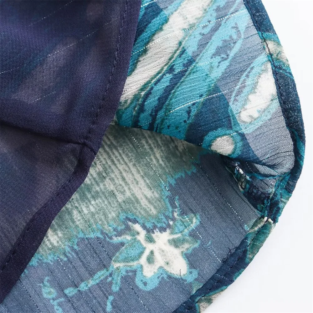 طقم مطبوع بخيوط معدنية ربيعية/تنورة مطبوعة برباط عالي الخصر للنساء