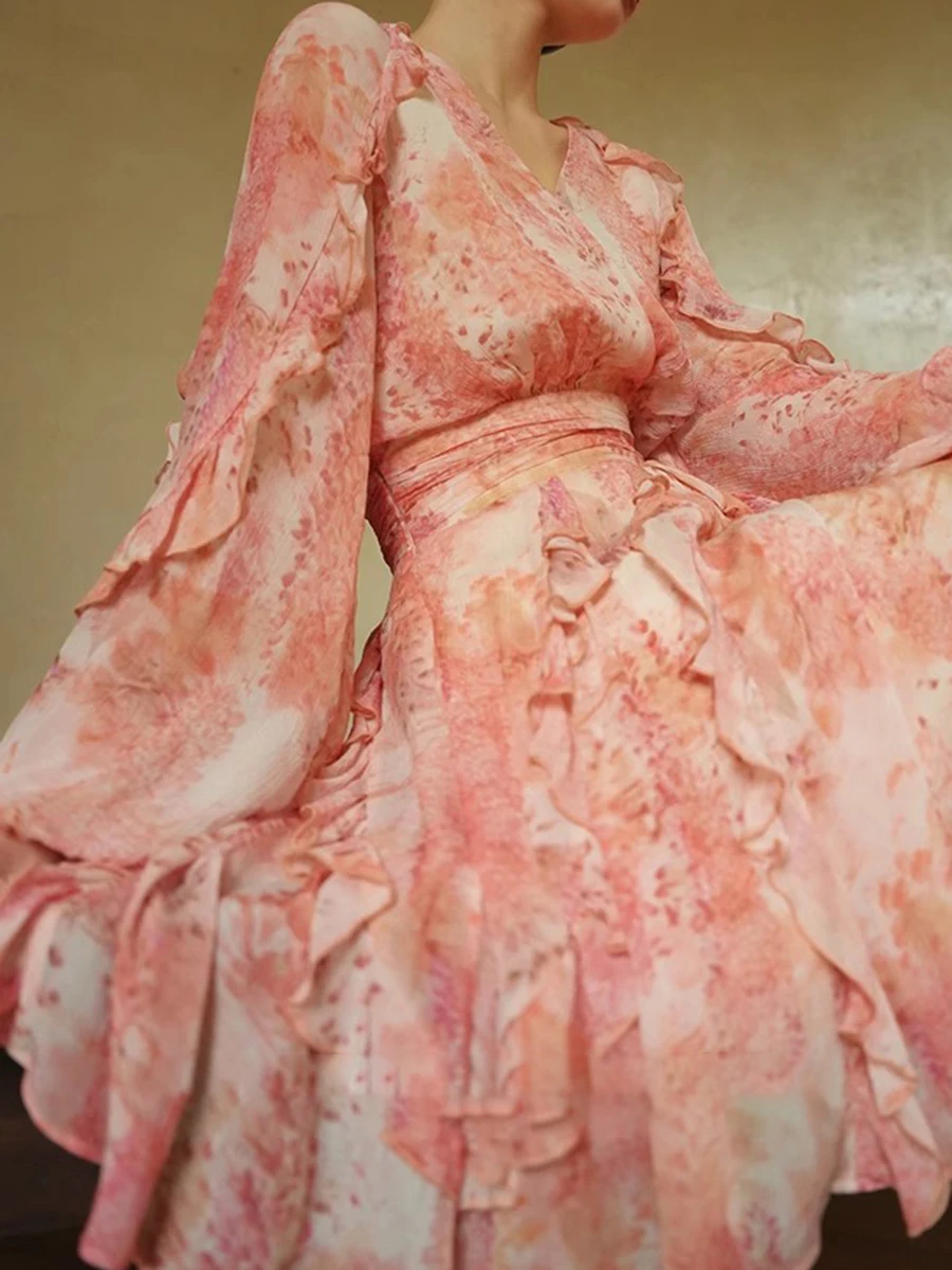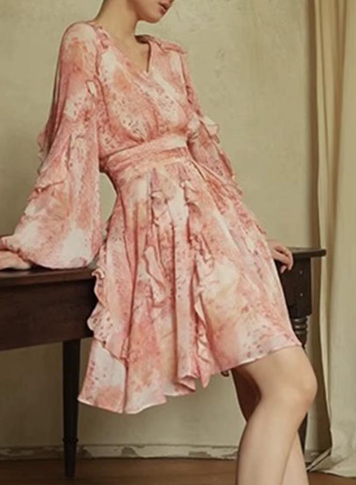 فساتين أنيقة فضفاضة للنساء الخامس الرقبة طويلة الأكمام عالية الخصر مزاجه فستان قصير الإناث الاسلوب المناسب