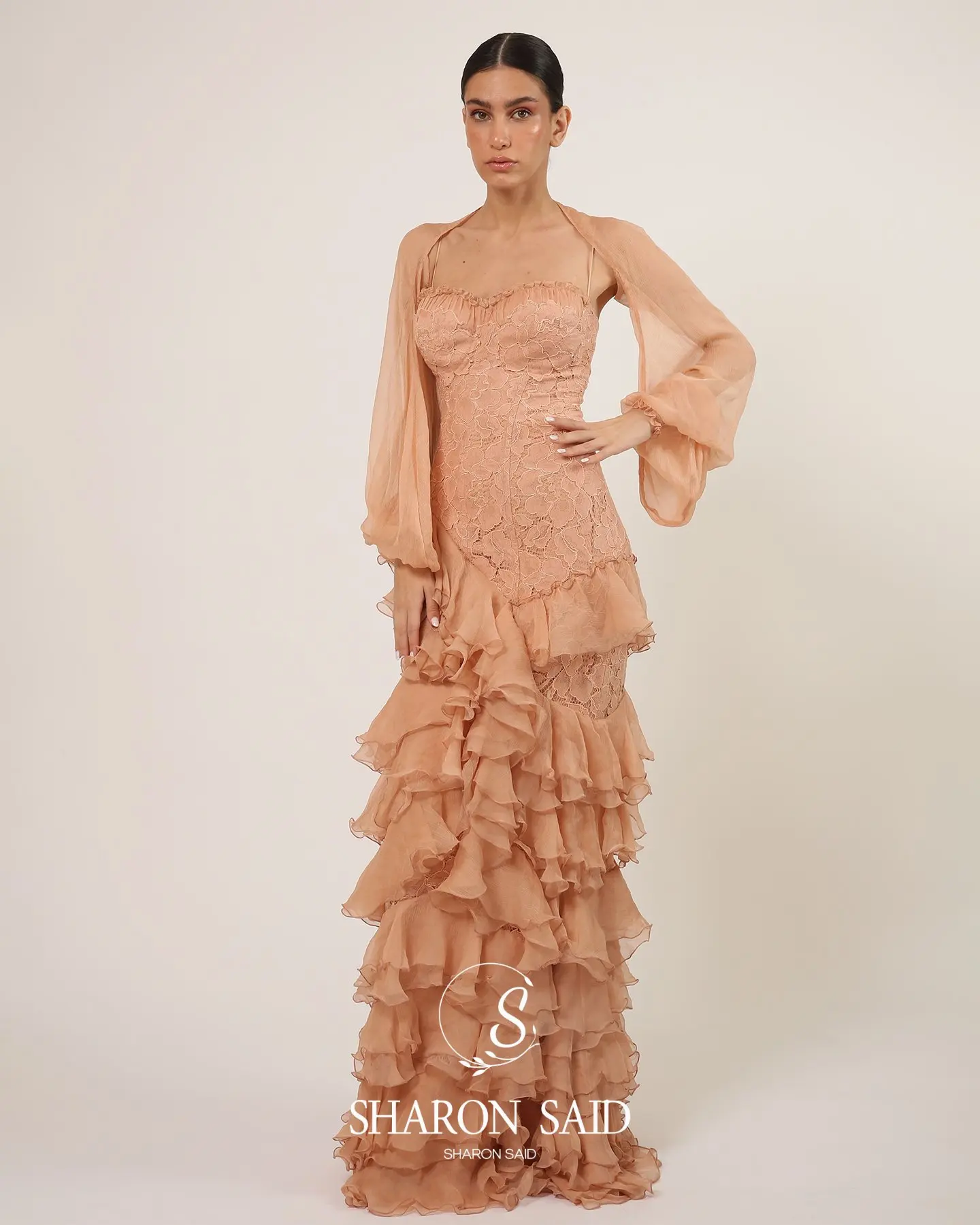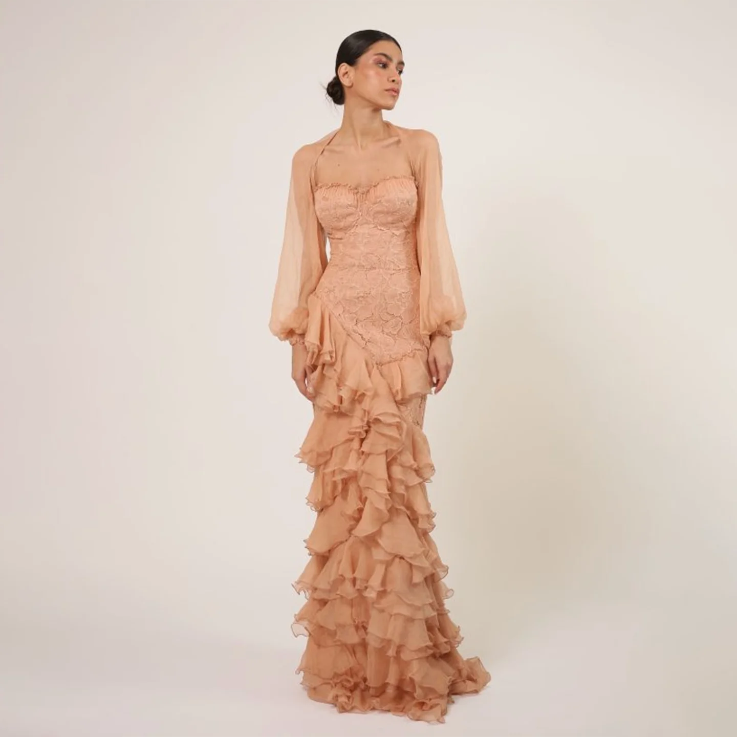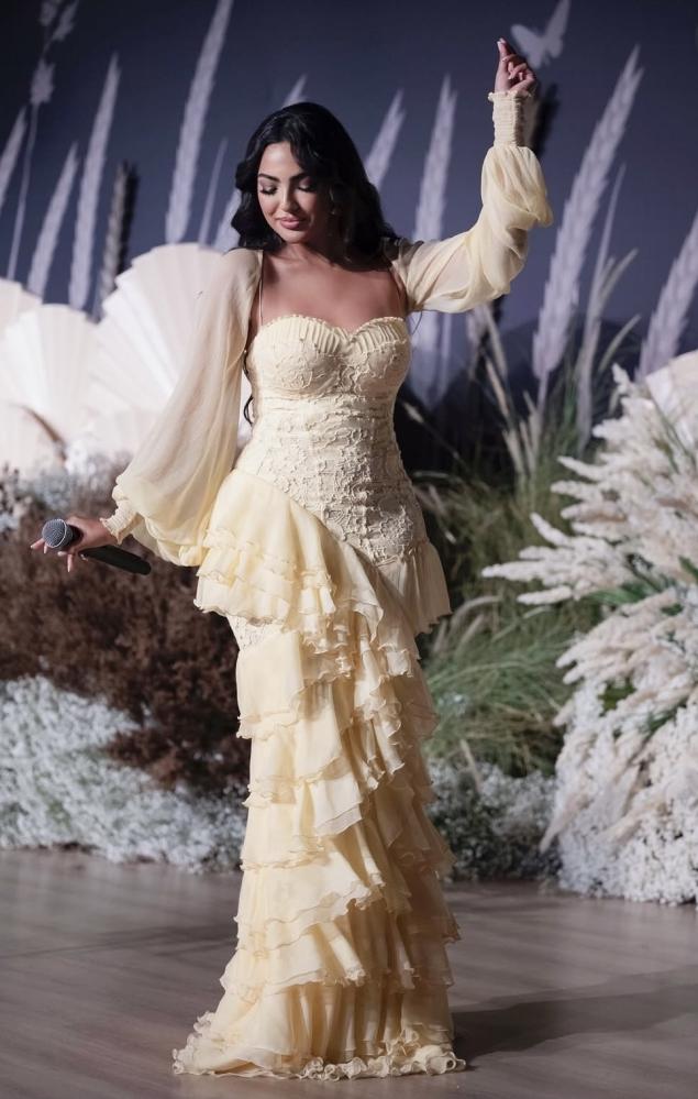 إذا كان الفستان بأكمام طويلة، فلا نزال بحاجة إلى مقاس آخر: