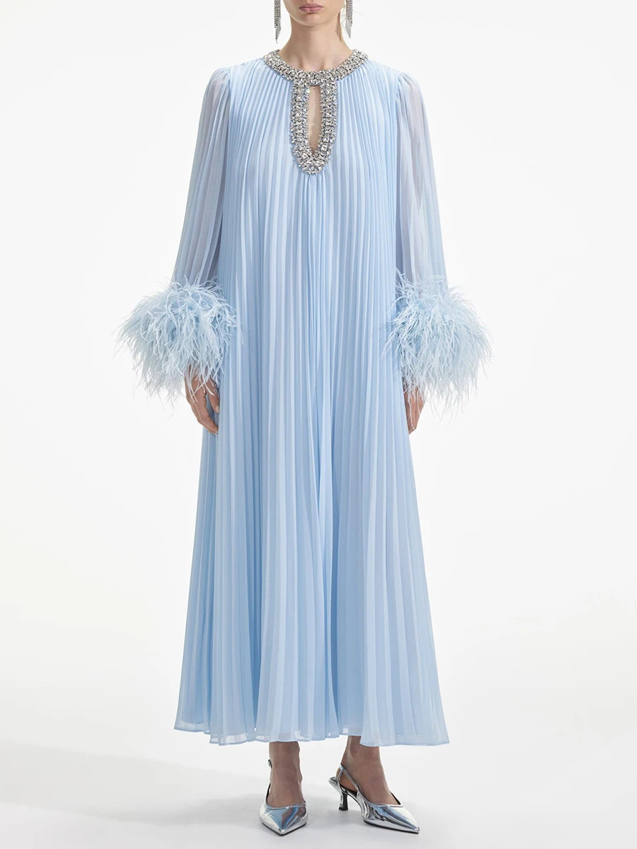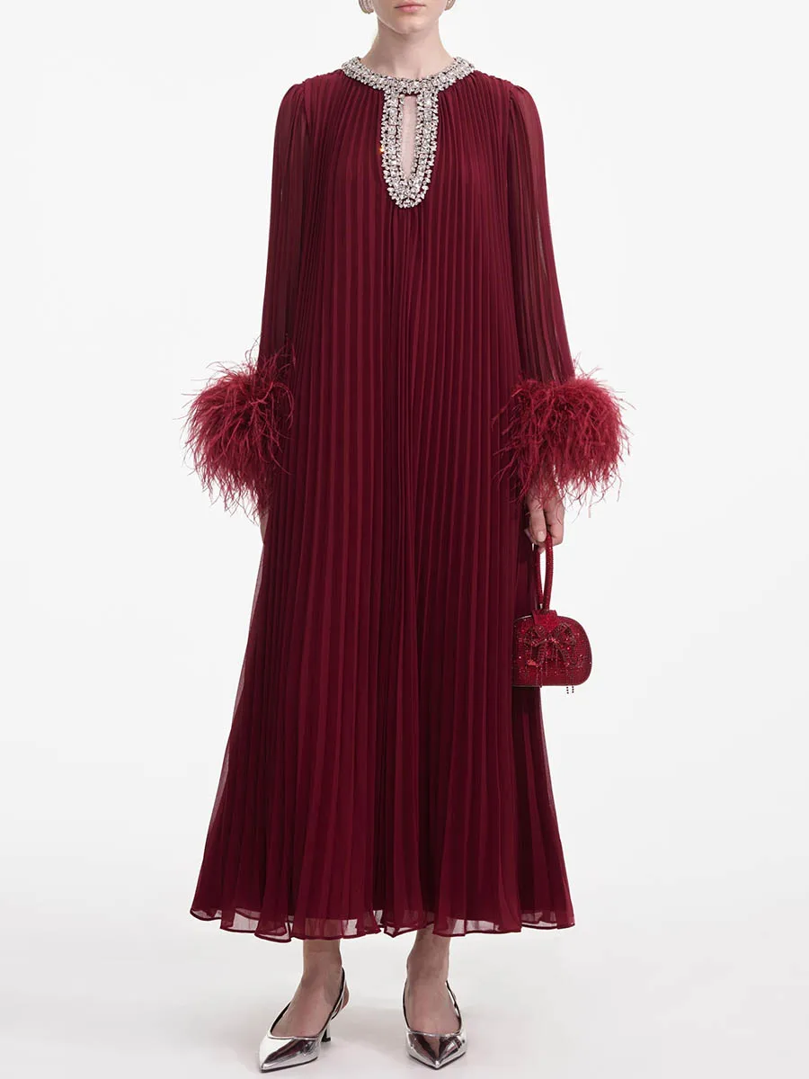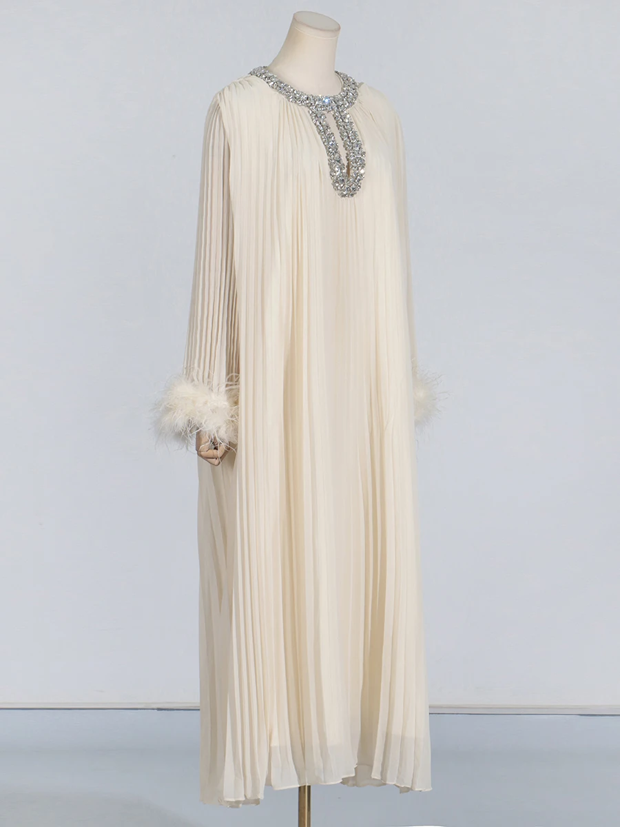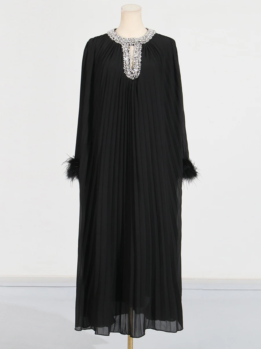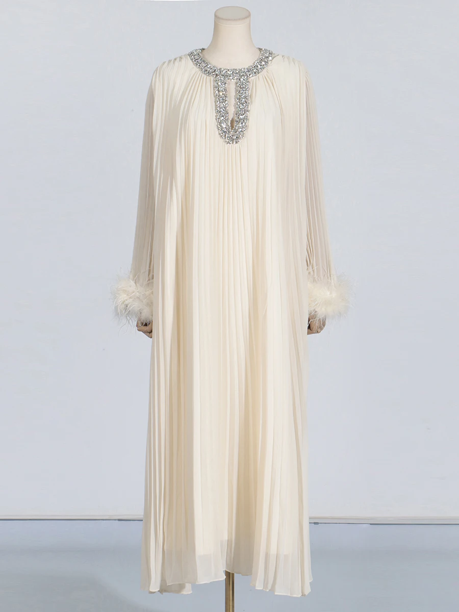فساتين فضفاضة مطوي للنساء س الرقبة طويلة الأكمام المرقعة الريش الجوف خارج