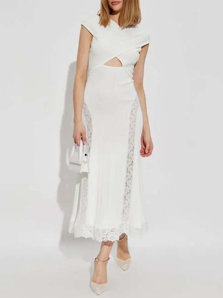 فساتين للنساء الرقبة أكمام عالية الخصر الجوف