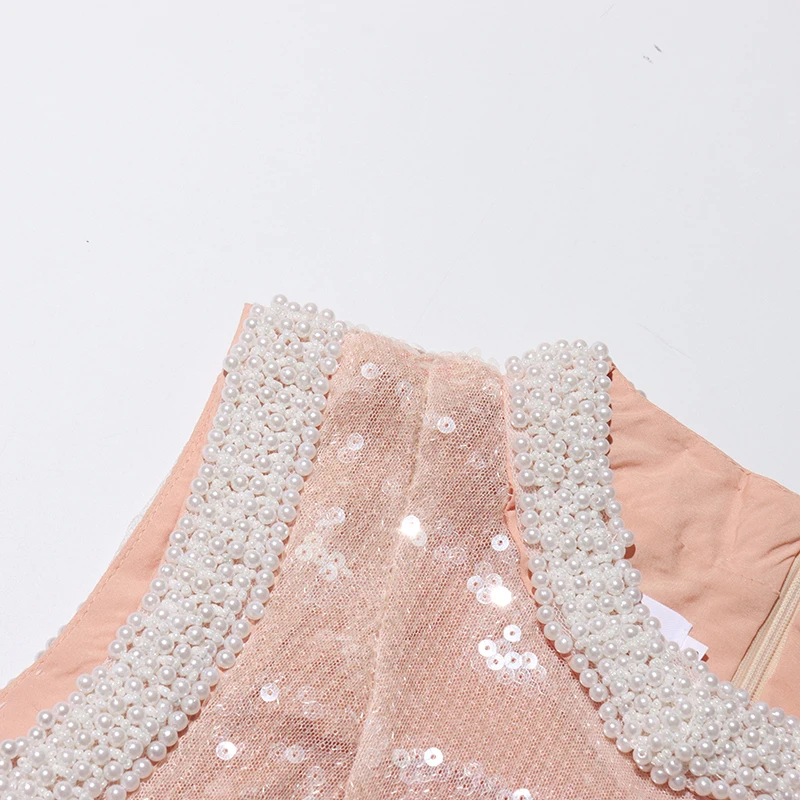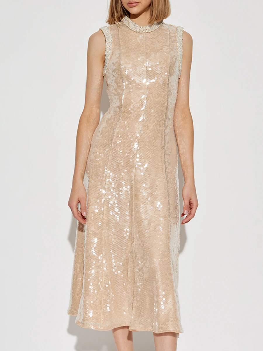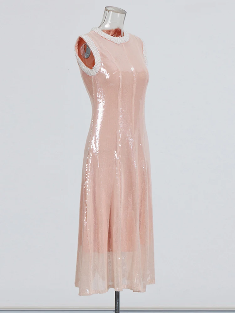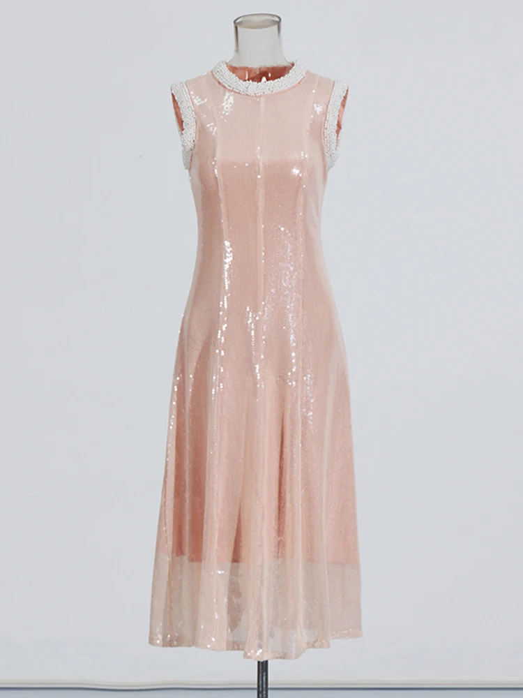 فساتين للنساء الرقبة لؤلؤ أكمام عالية الخصر مزاجه فستان أنثى
