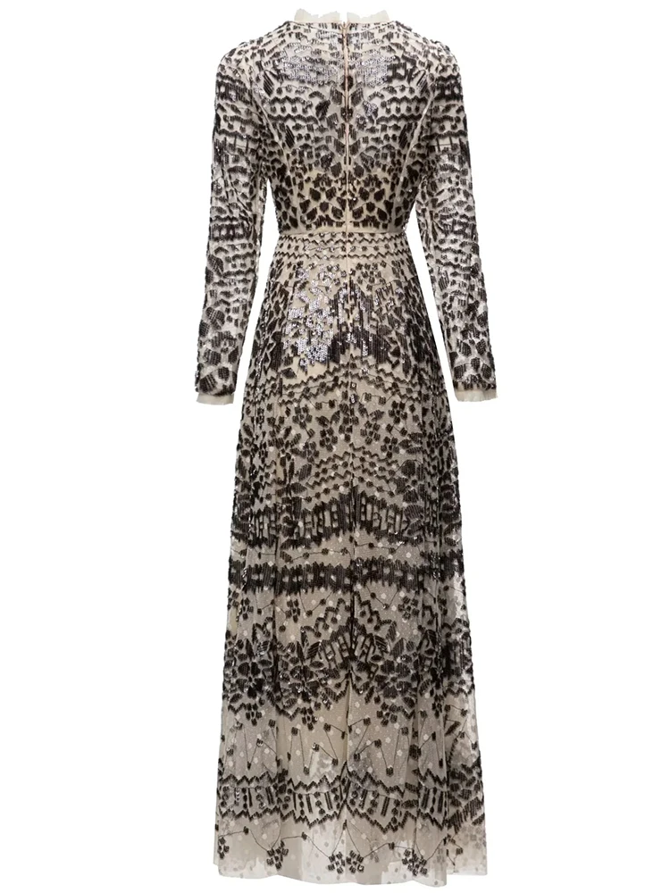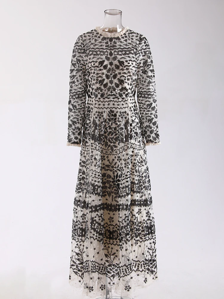 فساتين نسائية أنيقة مطبوعة شبكية مطرزة بأكمام طويلة فستان مأدبة ريترو 2024 ملابس جديدة XL3
