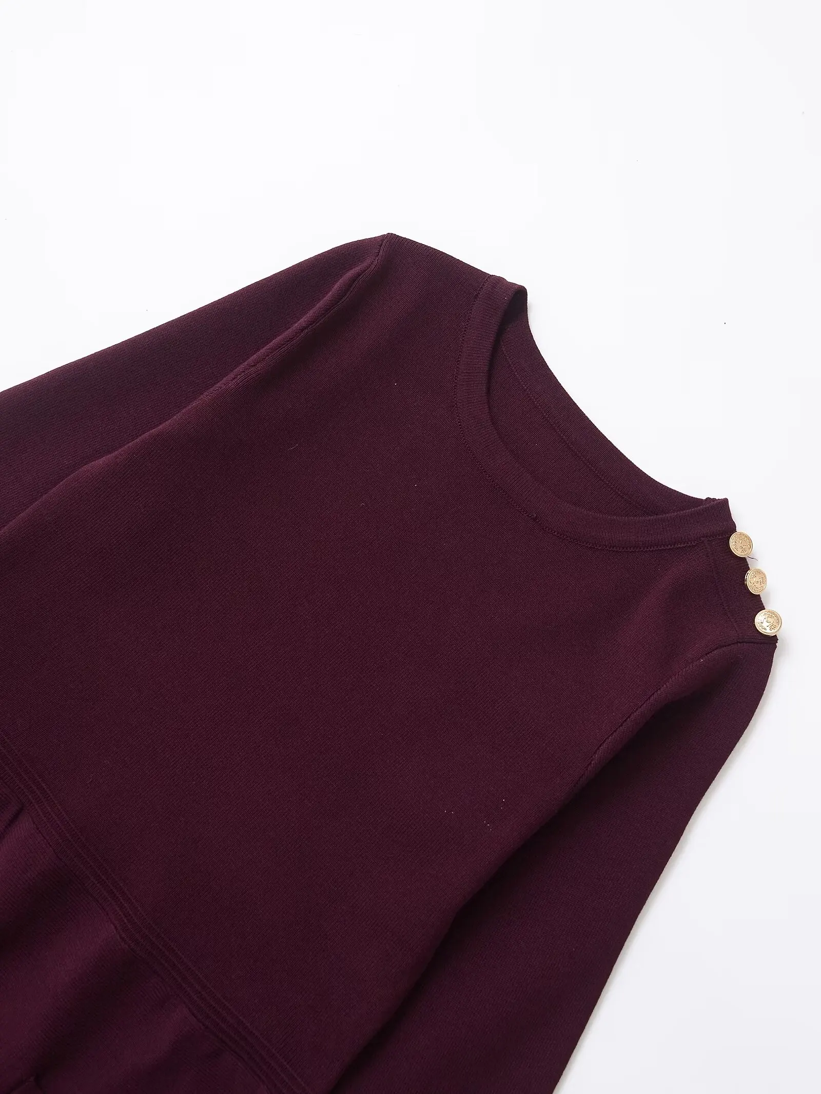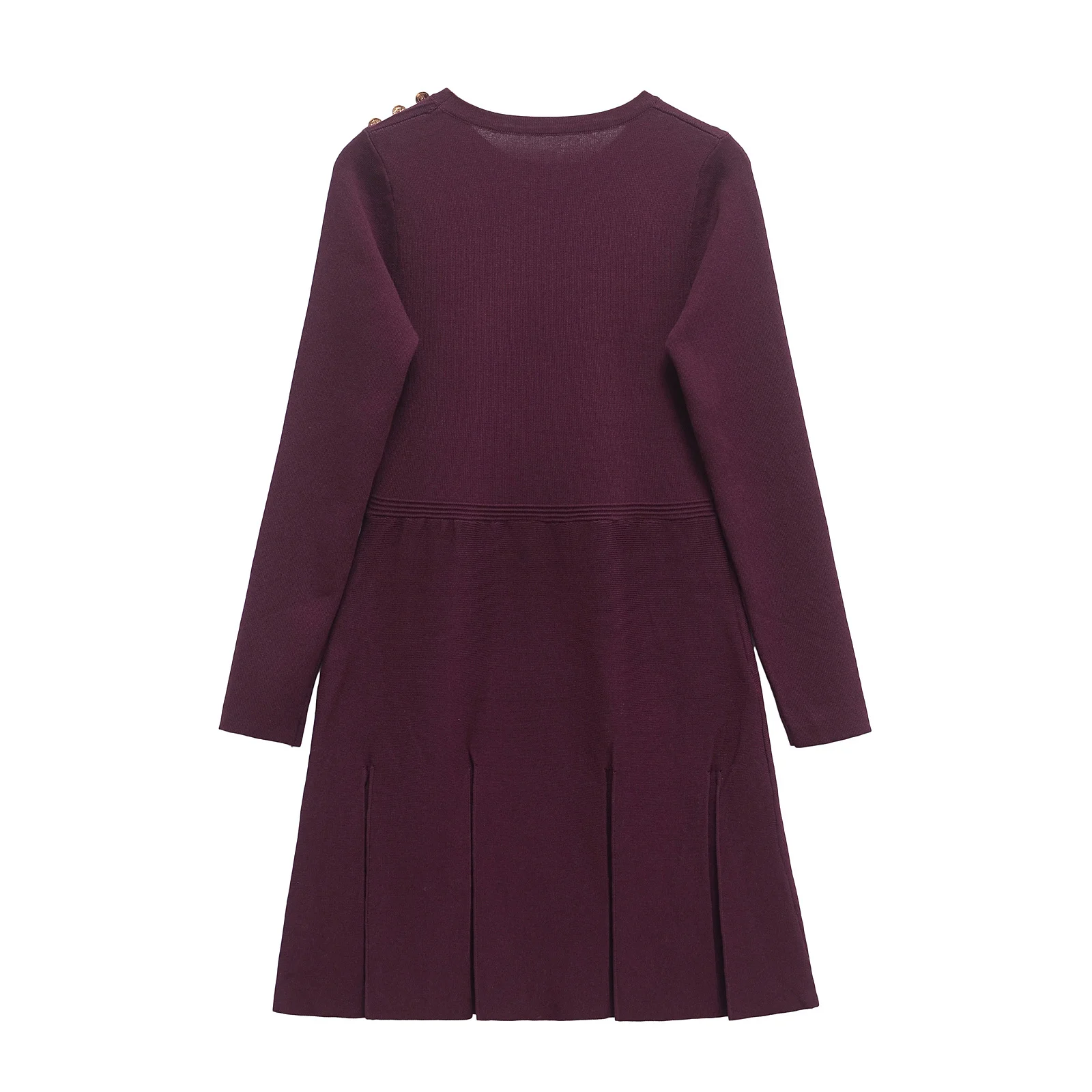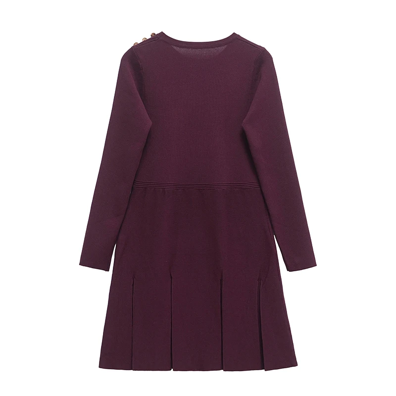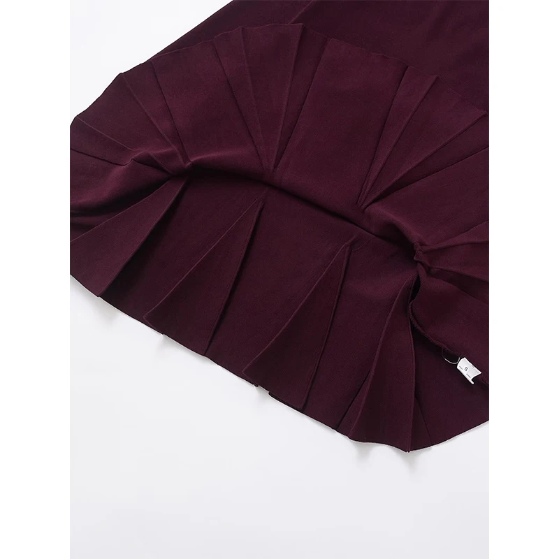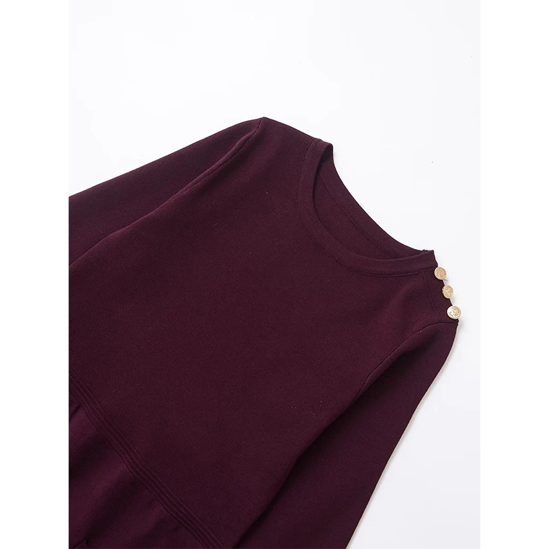فساتين نسائية قصيرة متماسكة بطيات بحاشية عنابي وأكمام طويلة ورقبة دائرية مع جيوب فستان قصير للخريف والشتاء فساتين نسائية
