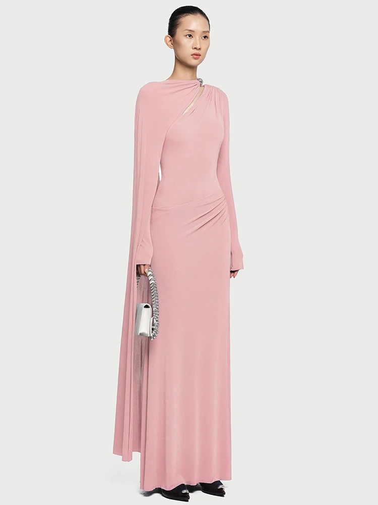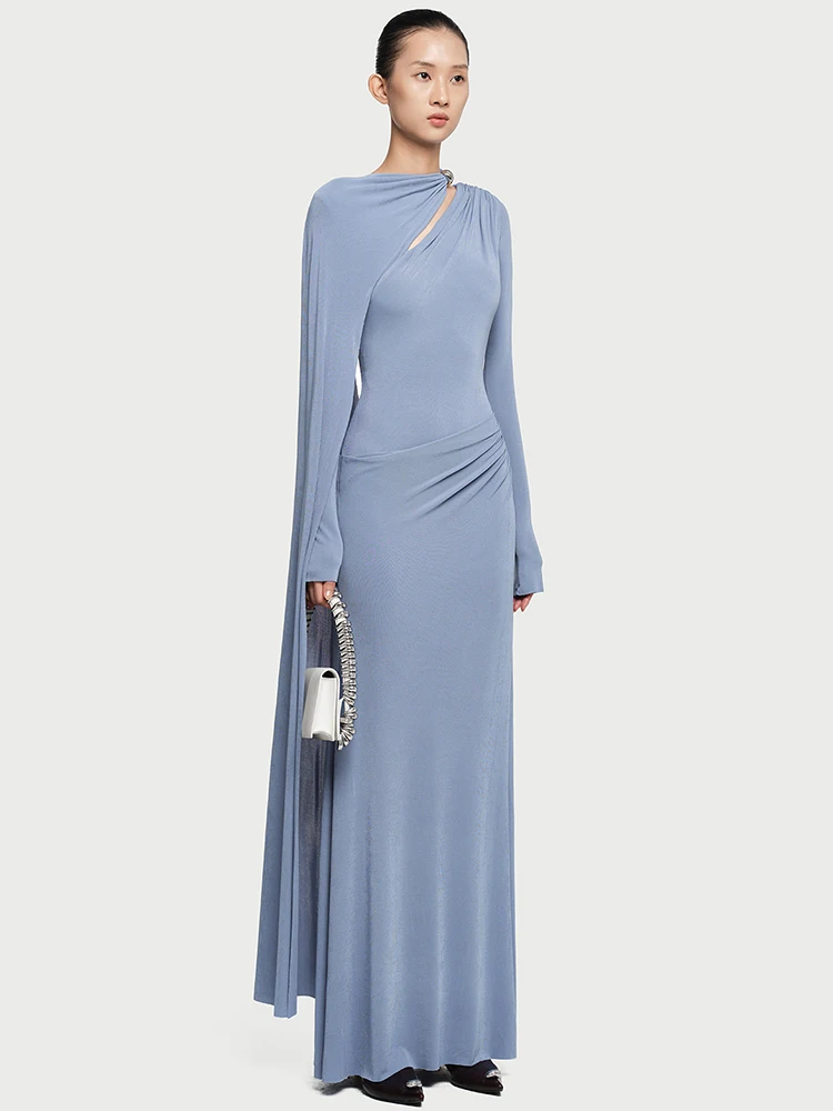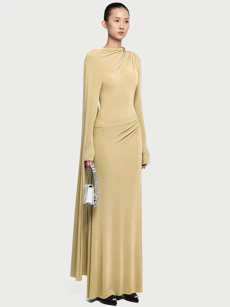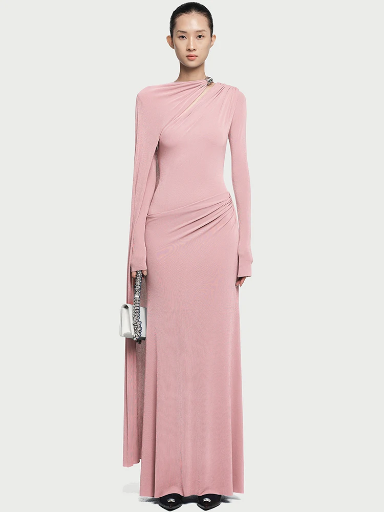 فستان أنيق غير متماثل الشريط مشبك معدني مطوي