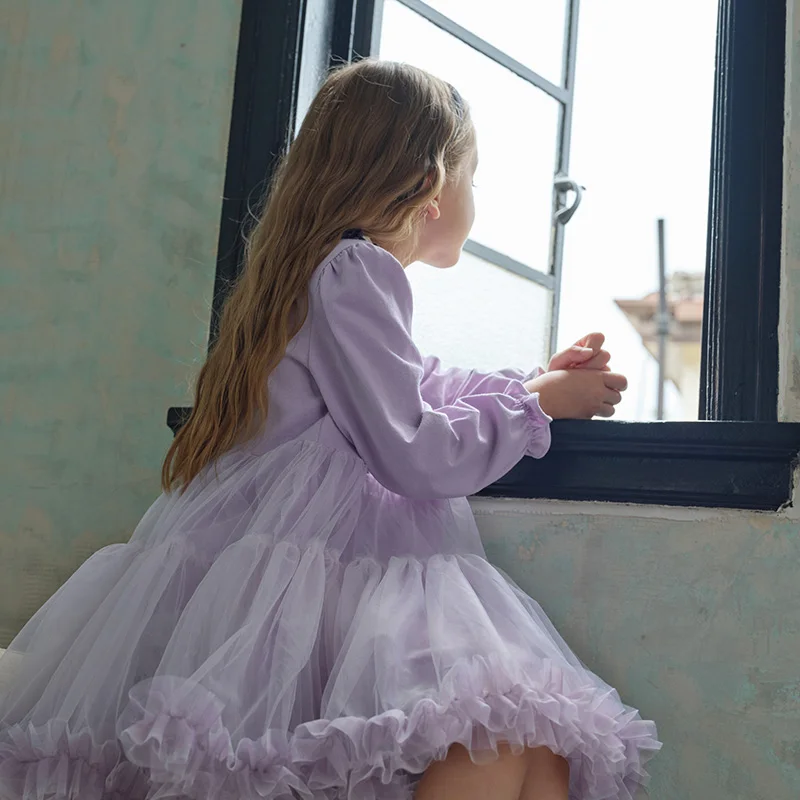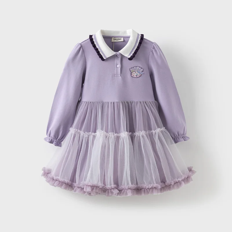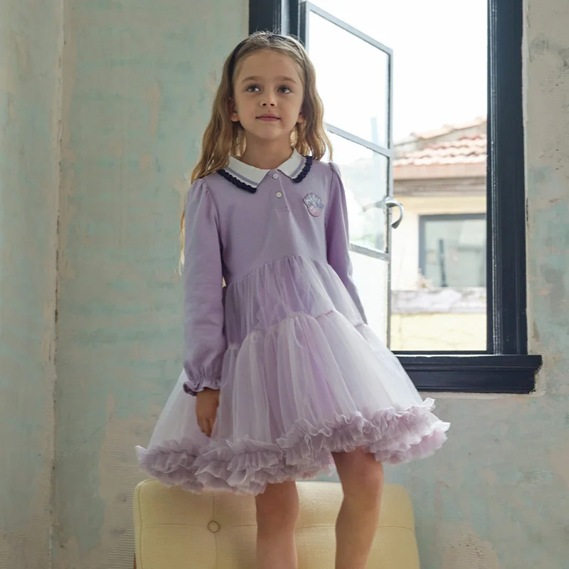 فستان الأميرة الشبكي للأطفال من Dave Bella فستان ربيعي لطيف كاجوال بأكمام طويلة للفتيات فستان حفلات