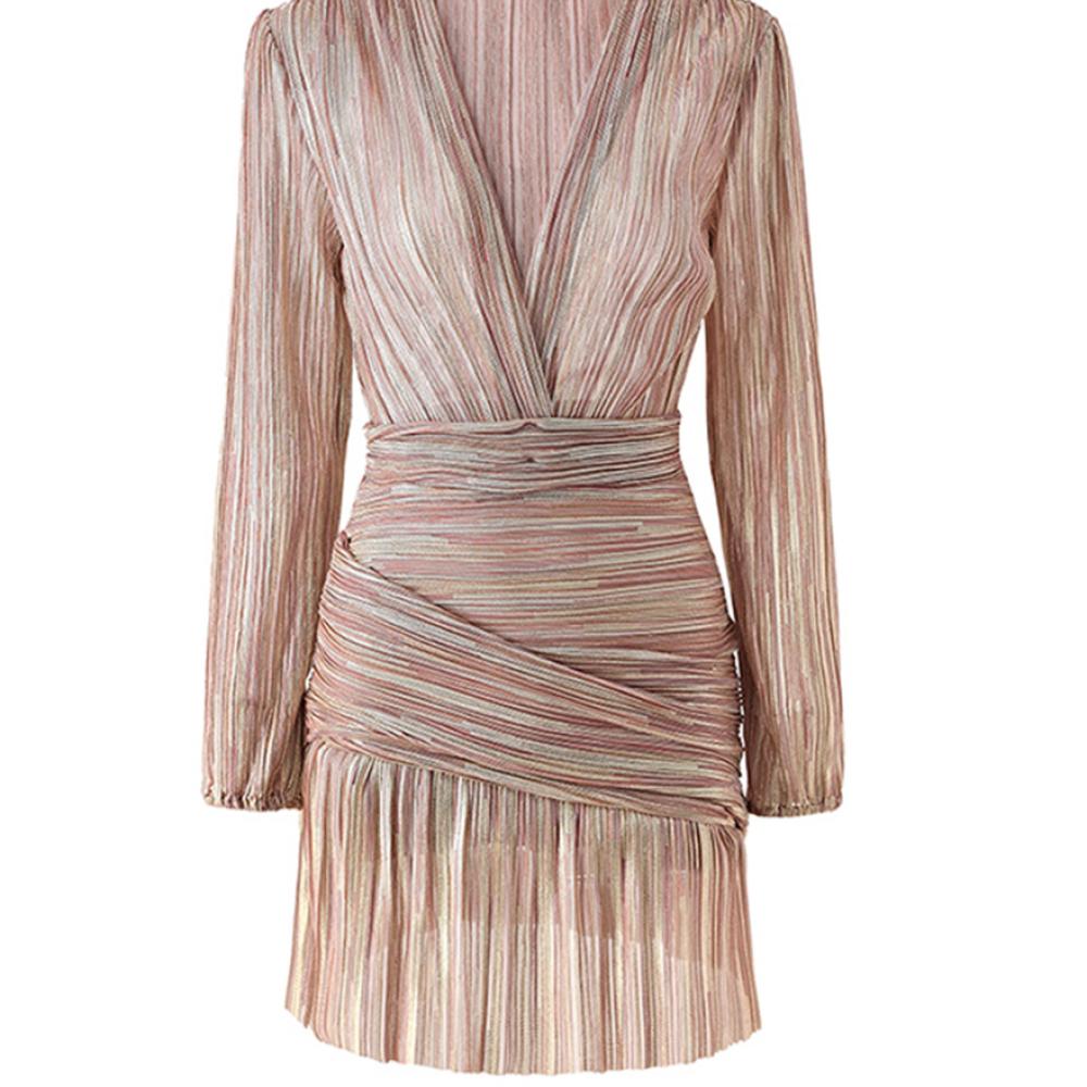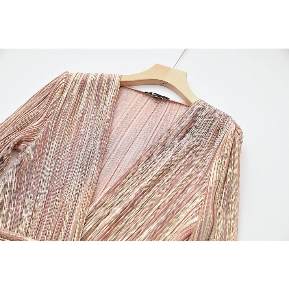 فستان حريمي جذاب بياقة على شكل v ذو تصميم متدلي على الطراز الفرنسي مُزين برقبة على شكل v ذو جودة عالية