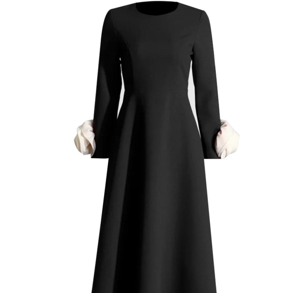 فستان نسائي أنيق ، مزخرف ، رقبة مستديرة ، أكمام طويلة ، خصر مرتفع ، فساتين نسائية