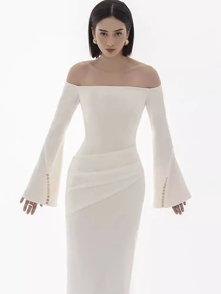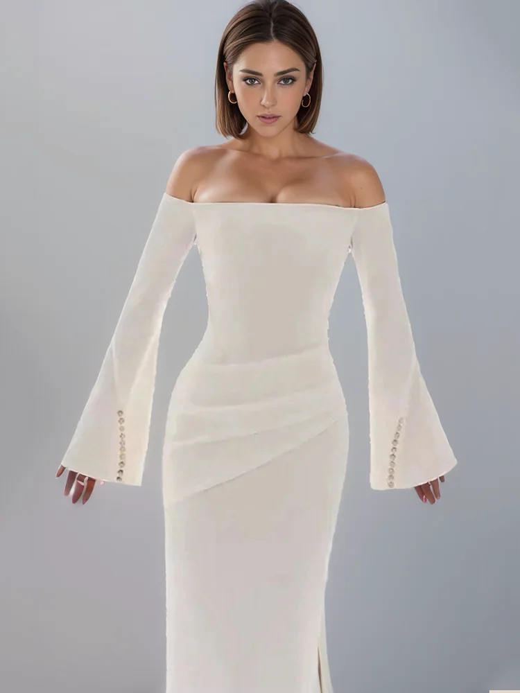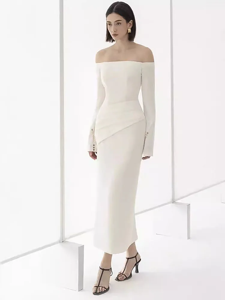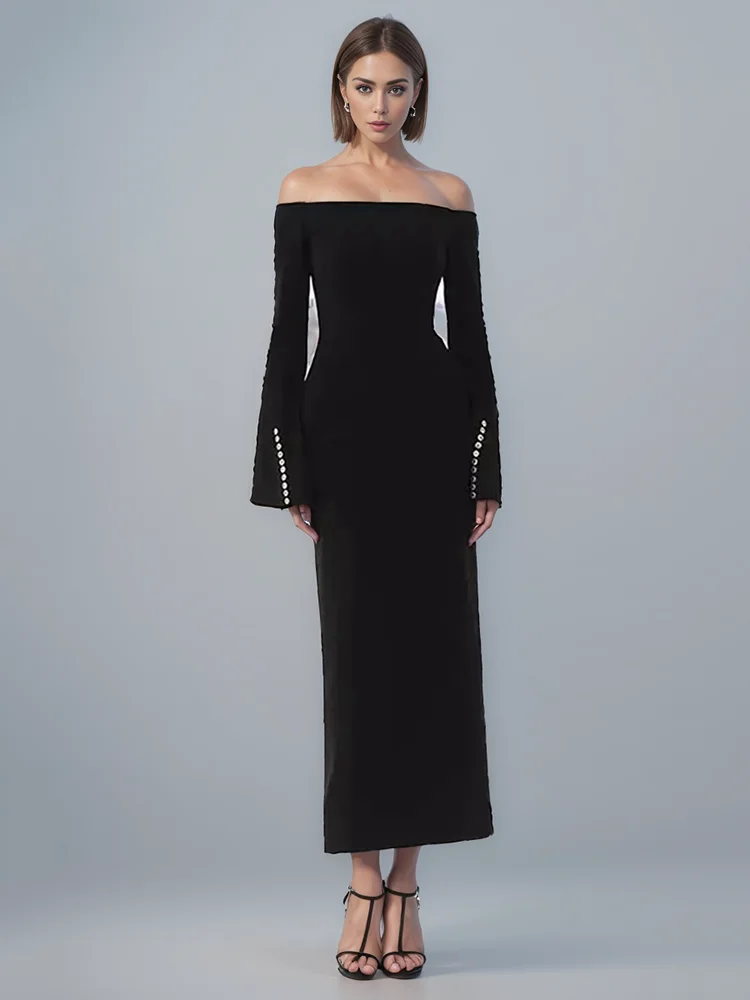 -فستان نسائي بأكمام مائلة ، أزرار تزيين ، فساتين بطول الكاحل ، تناسب الجسم ، أزياء الصيف ، المد الجديد ، ،