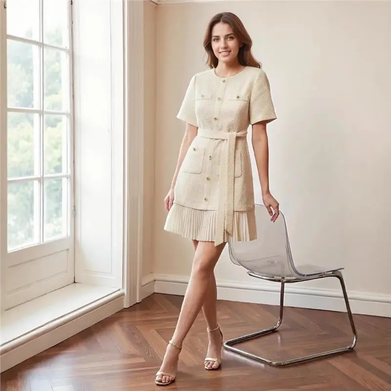 تضيف التنورة المزخرفة عنصرًا مرحًا إلى الفستان، مما يعزز جاذبيته الأنثوية ويوفر حركة رشيقة.