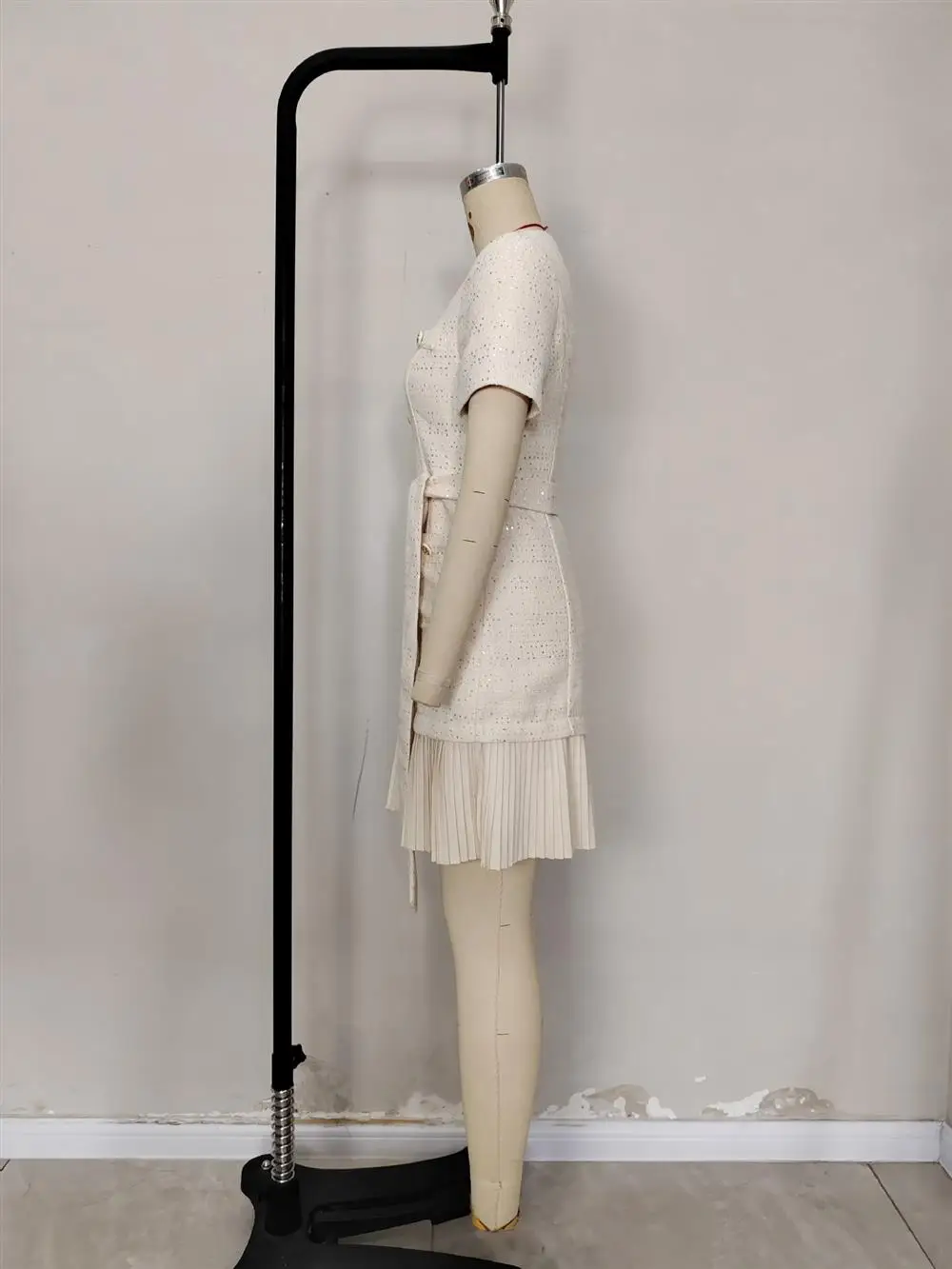 يتميز هذا الفستان بأكمامه القصيرة التي توفر راحة مثالية في الطقس الدافئ، مع الحفاظ على لمسة أنيقة وعصرية.