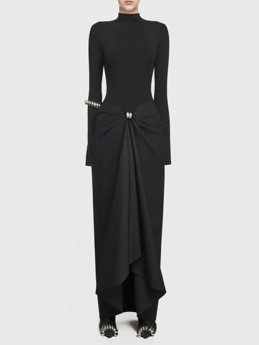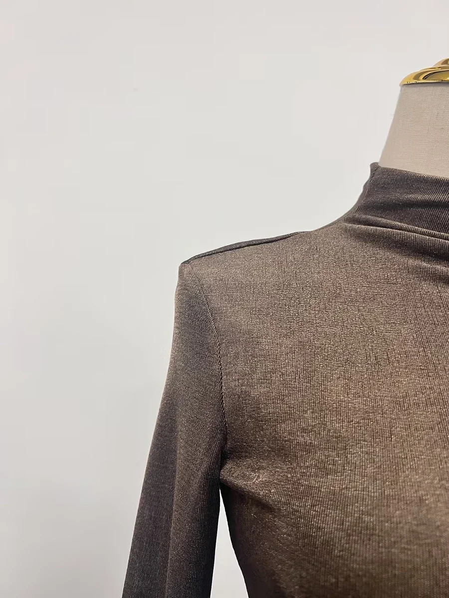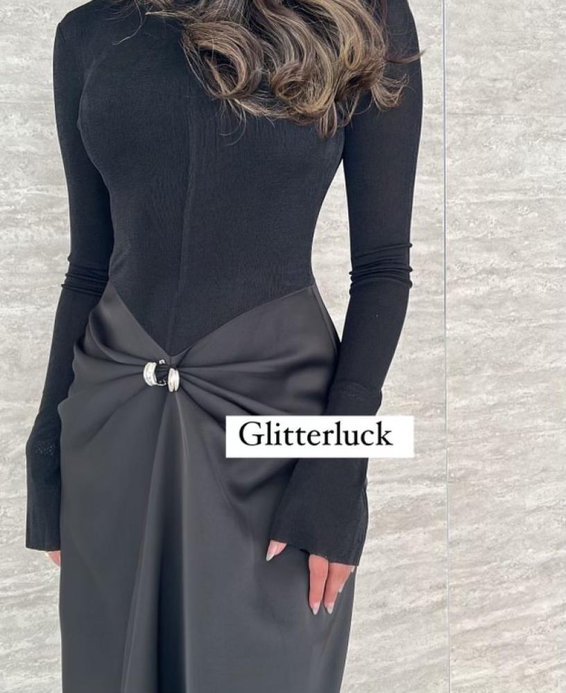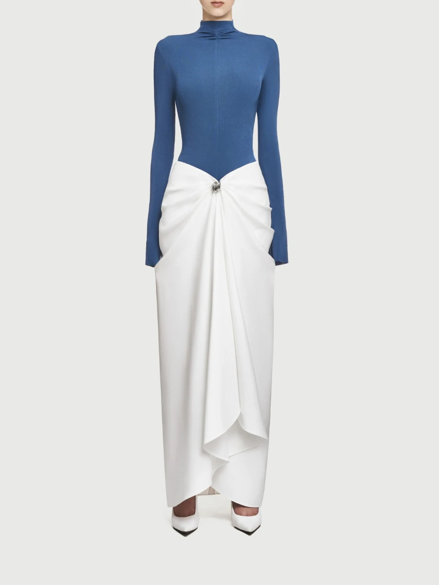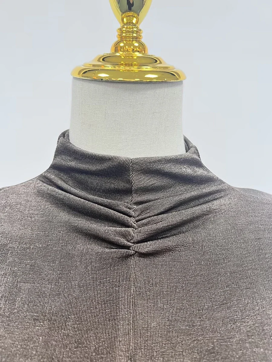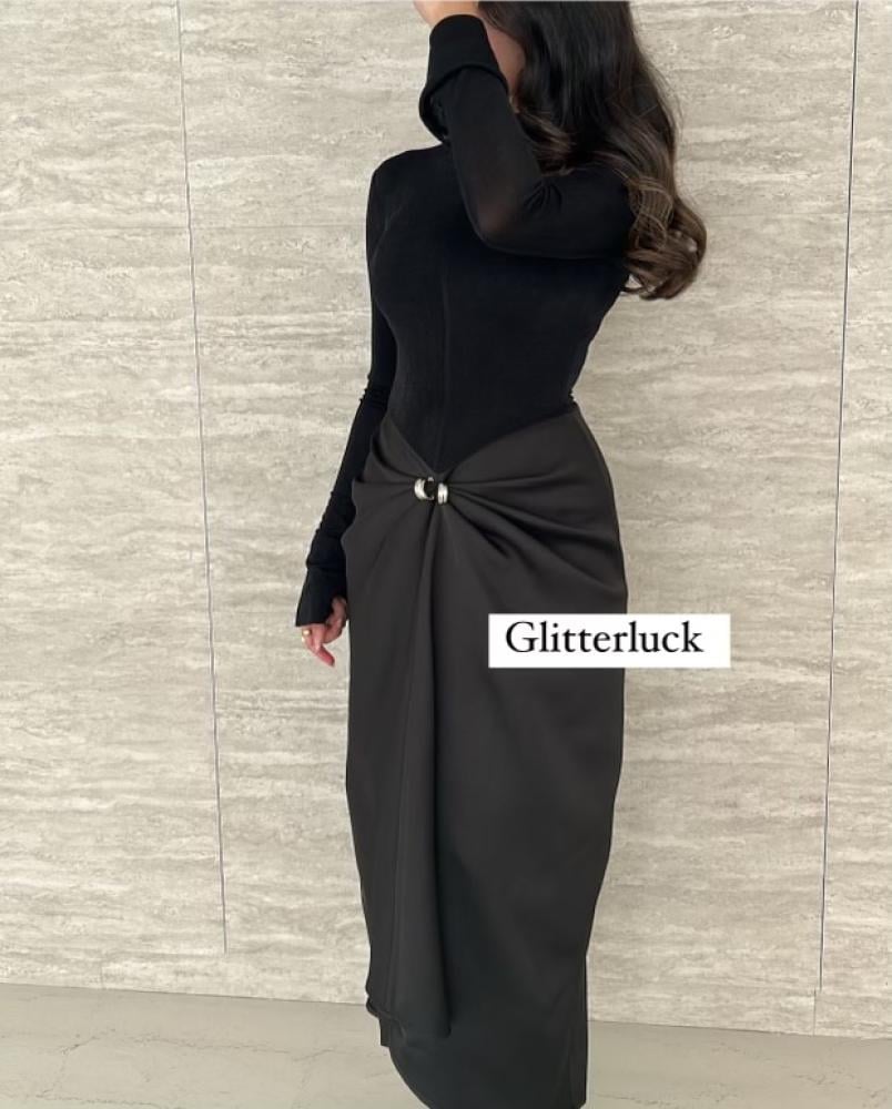 Fashion Two Piece Sets for Women Round Neck Long Sleeves Slimming Top High Waist Patchwork Folds Skirt Female New