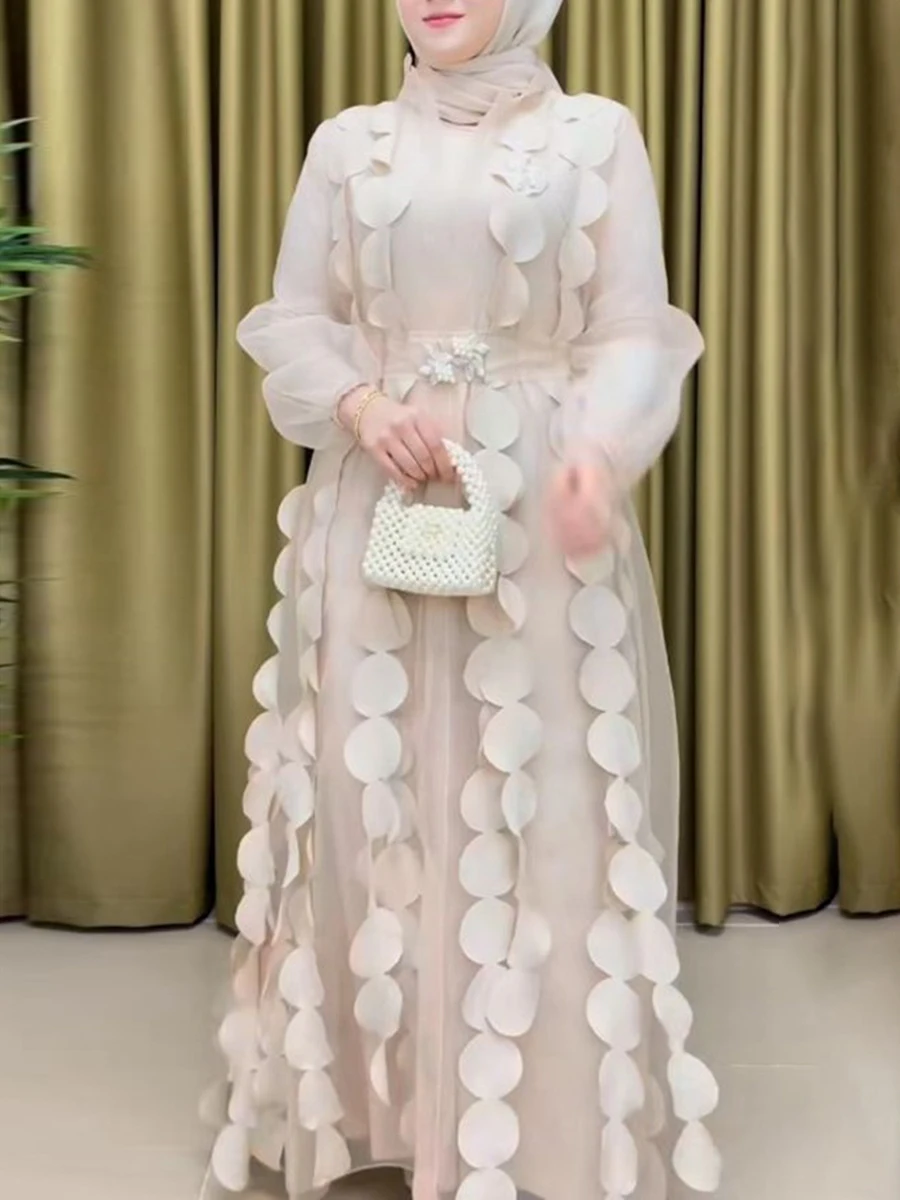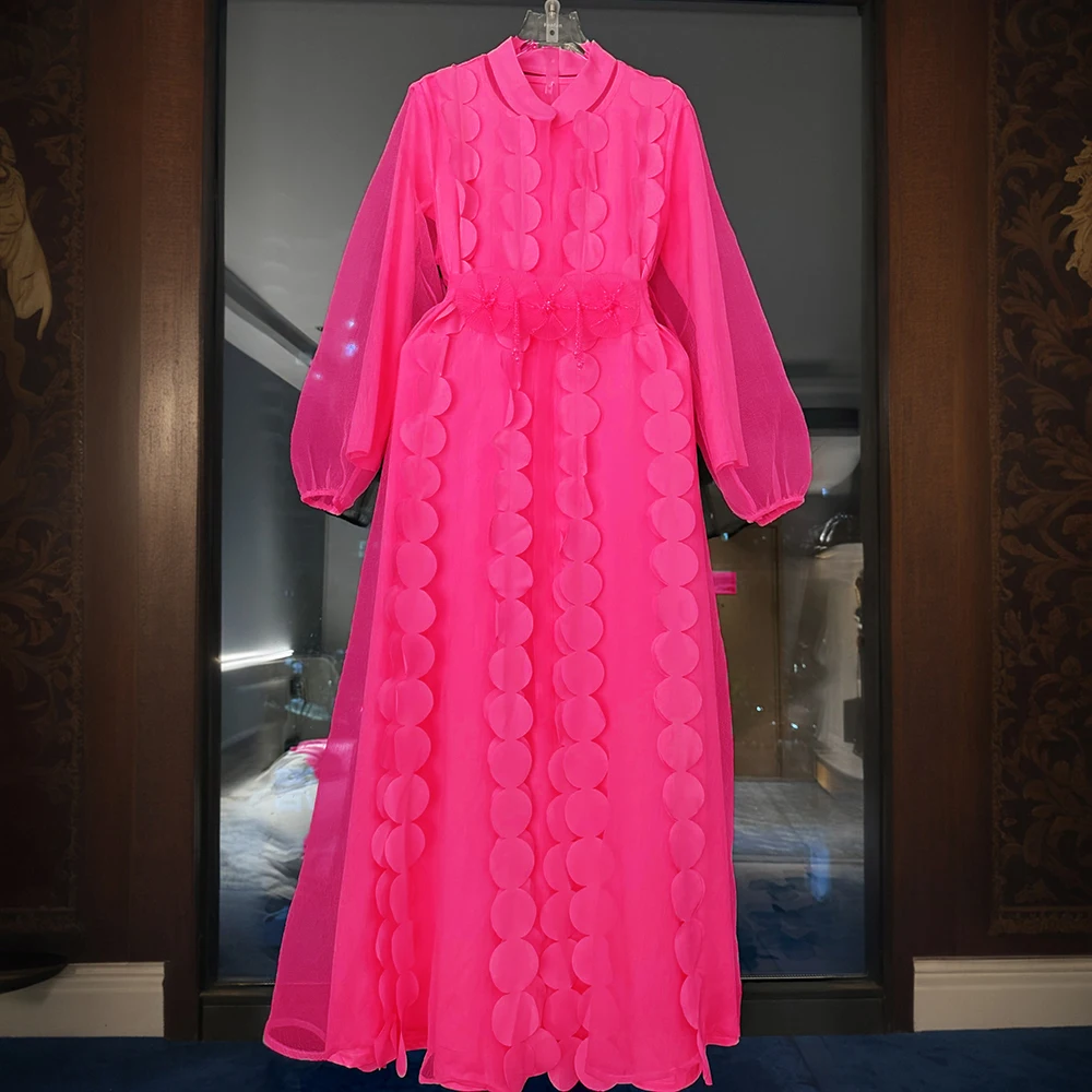 VGH الصلبة قطعتين مجموعة للنساء الوقوف طوق نفخة الأكمام تقسم شرابة شير شبكة معطف مع فساتين طويلة بدلة أنيقة الإناث